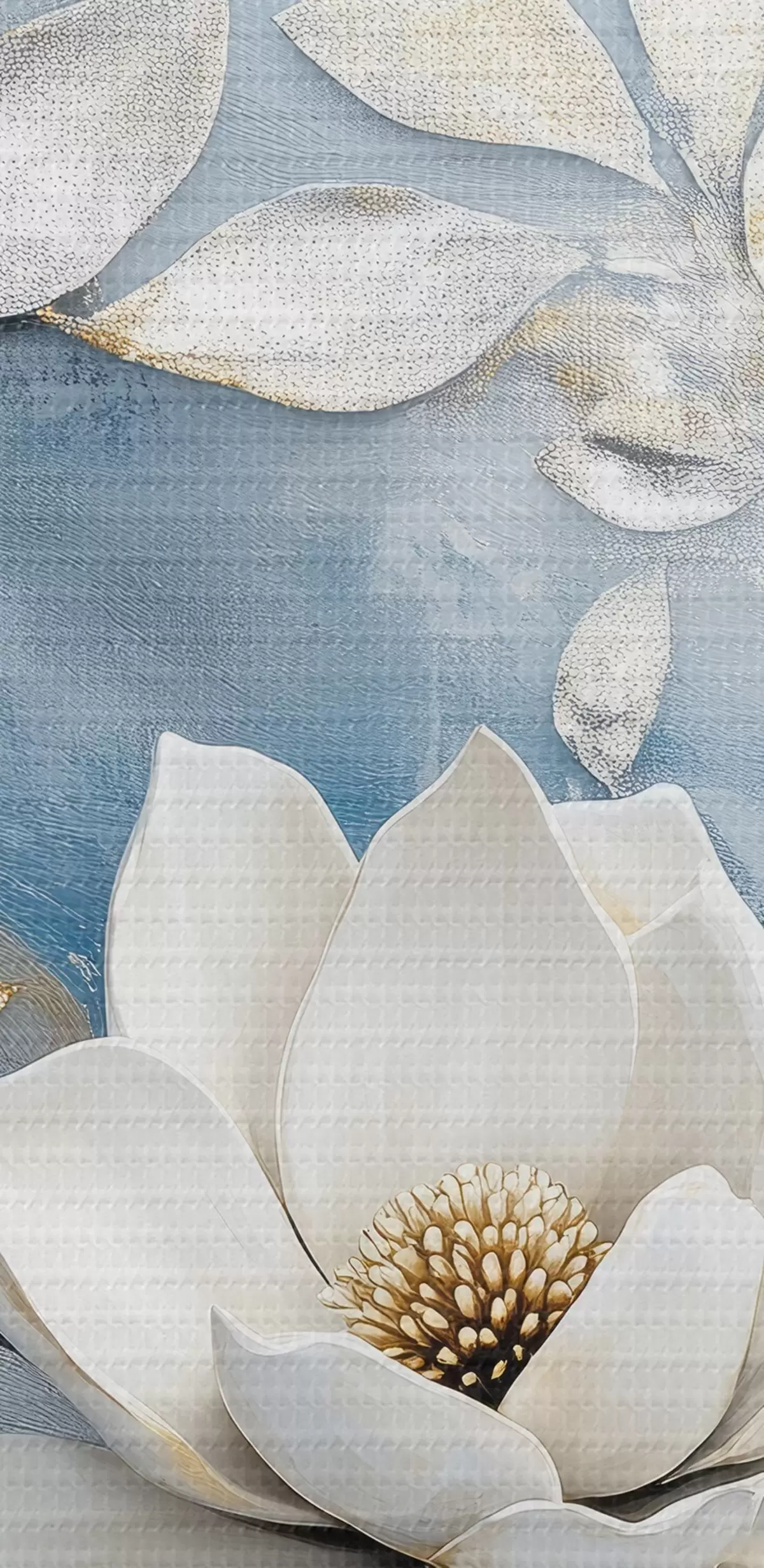 Кругла картина Гілка магнолії на абстрактному синьо-жовтому тлі Nr r43323