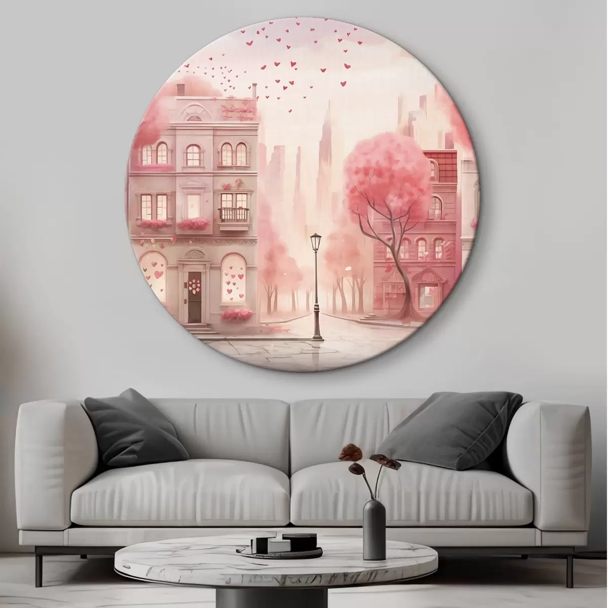 Кругла картина Романтична рожева вулиця з сердечками Nr r43324