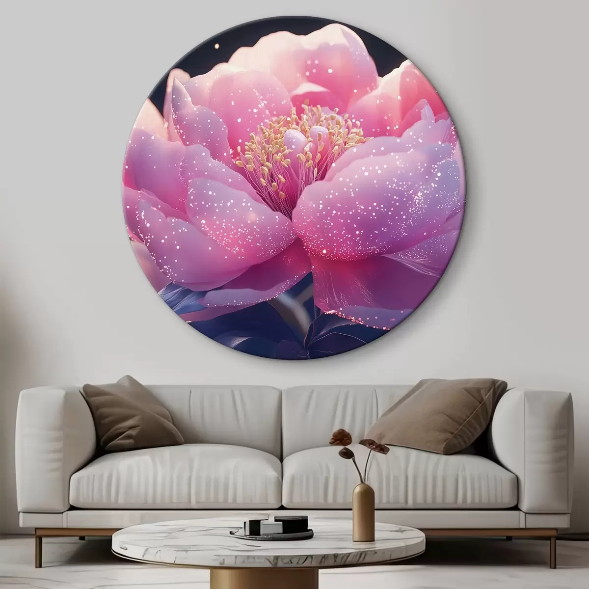 Кругла картина Велика ніжно-рожева квітка з сонячними променями Nr r43327