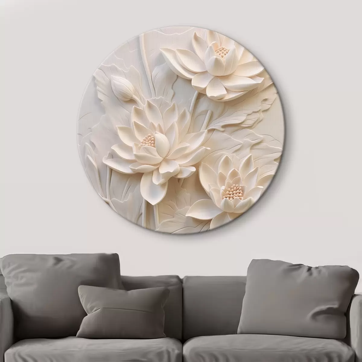 Кругла картина Біла ліпнина, імітація, квіти Nr r43334