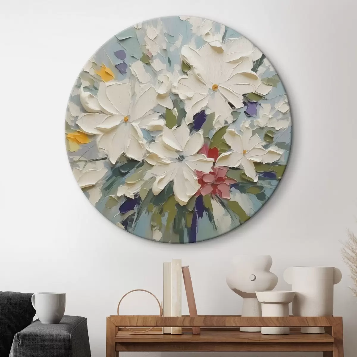 Кругла картина Букет квітів з імітацією живопису r43348