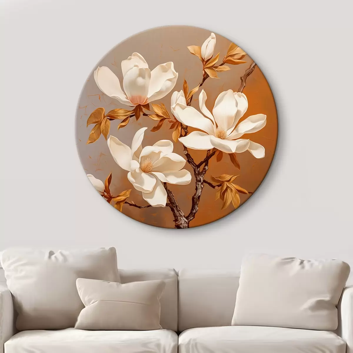 Кругла картина Олійний живопис з білою магнолією на гілці на жовтому тлі Nr r43361
