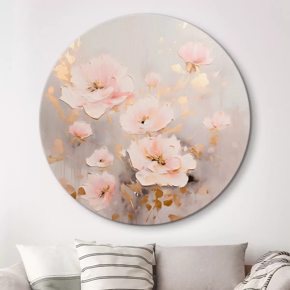 Кругла картина Рожеві елегантні квіти в стилі живопису Nr r43372