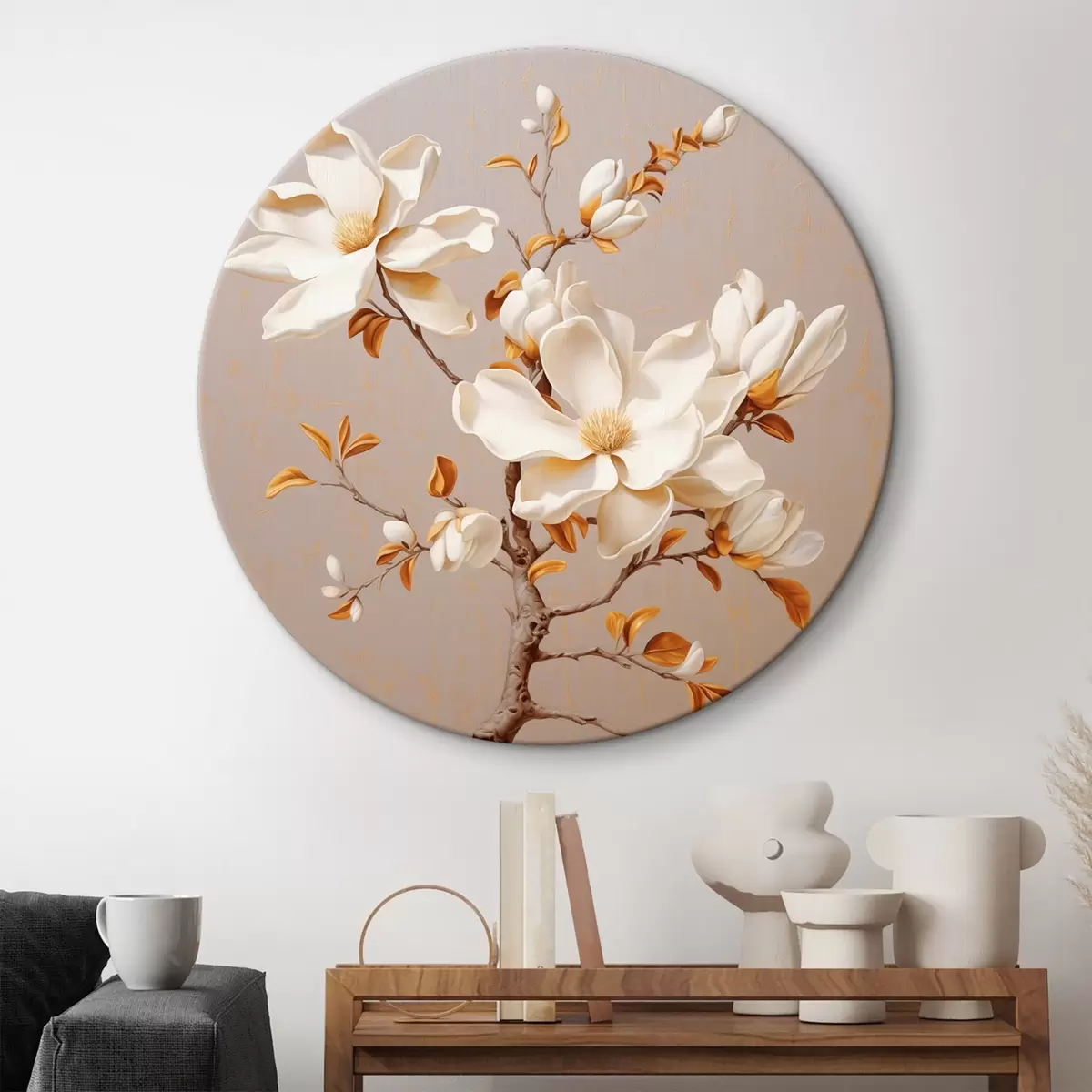 Кругла картина Витончена гілка магнолії в бежевих тонах Nr r43373