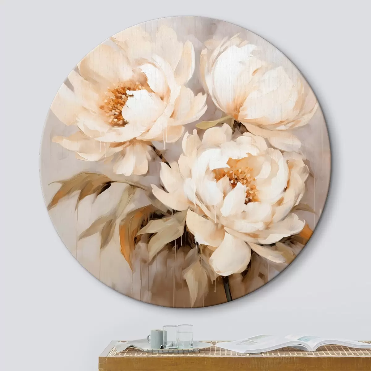 Кругла картина Ніжні півонії в нейтральних тонах у стилі абстрактного живопису Nr r43387