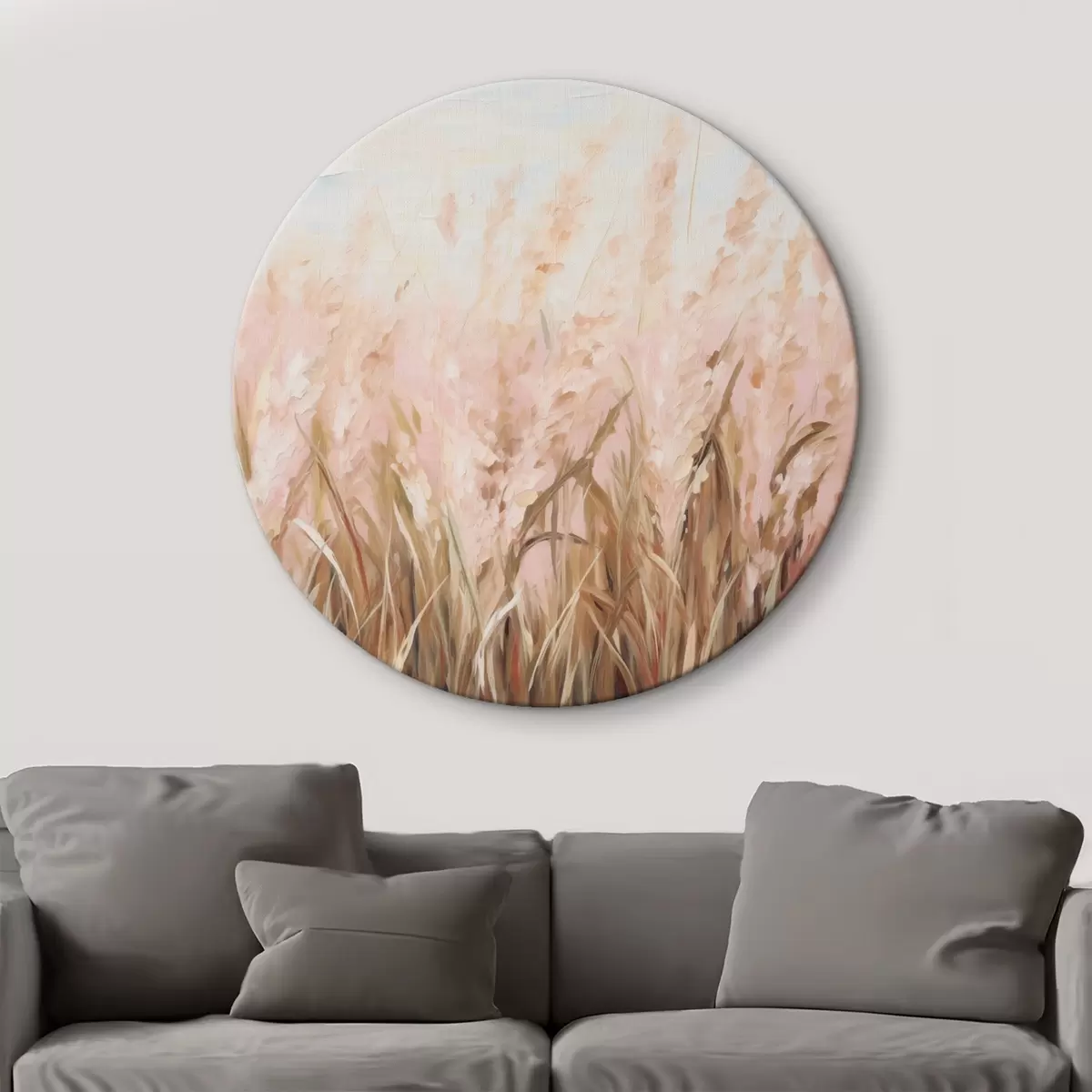 Кругла картина Трав'яне поле пампаси з рожевими та коричневими тонами, м'які мазки, імітація абстрактного олійного живопису Nr r43403