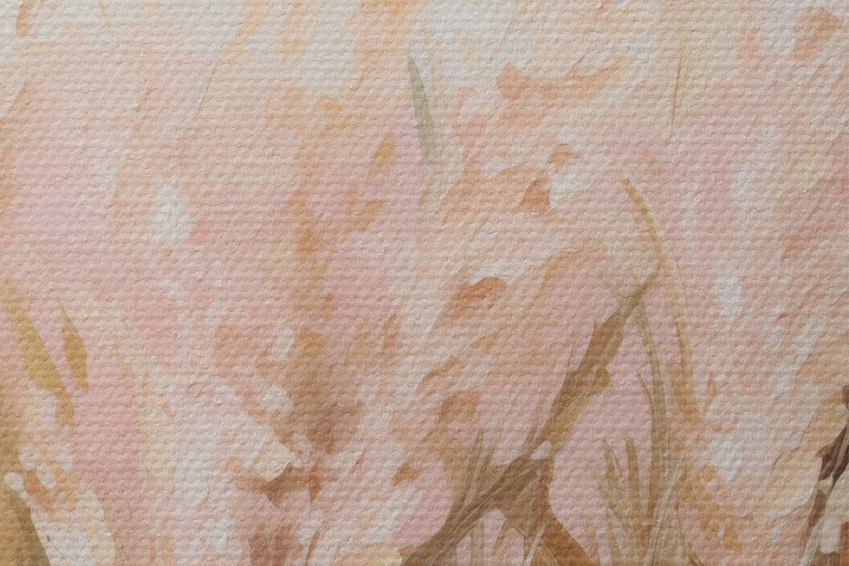 Кругла картина Трав'яне поле пампаси з рожевими та коричневими тонами, м'які мазки, імітація абстрактного олійного живопису r43403