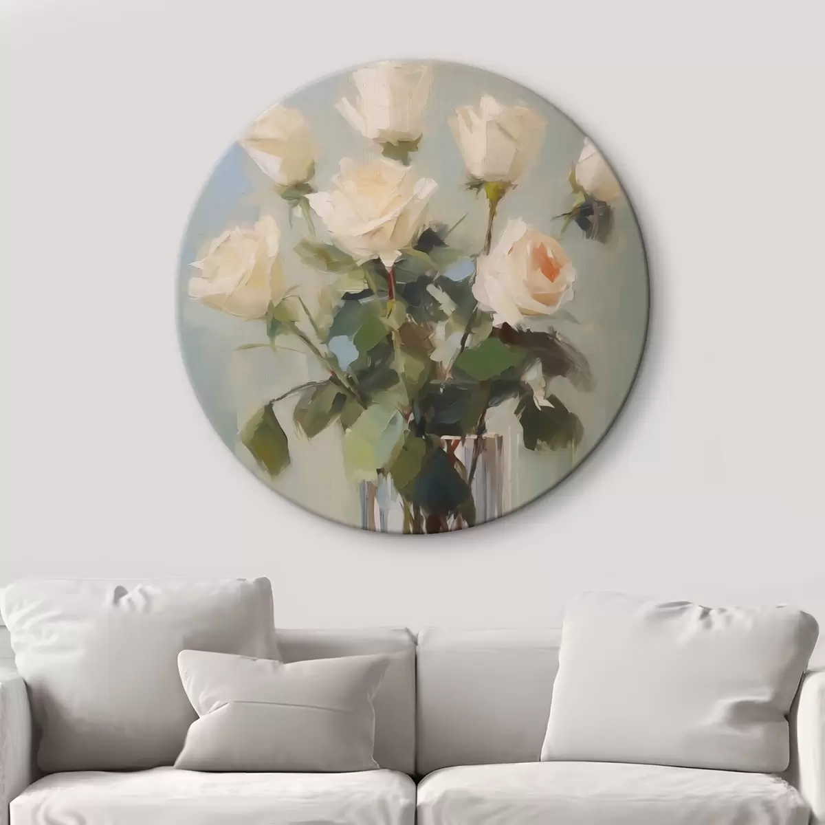 Кругла картина Троянди в скляній вазі з імітацією живопису r43432