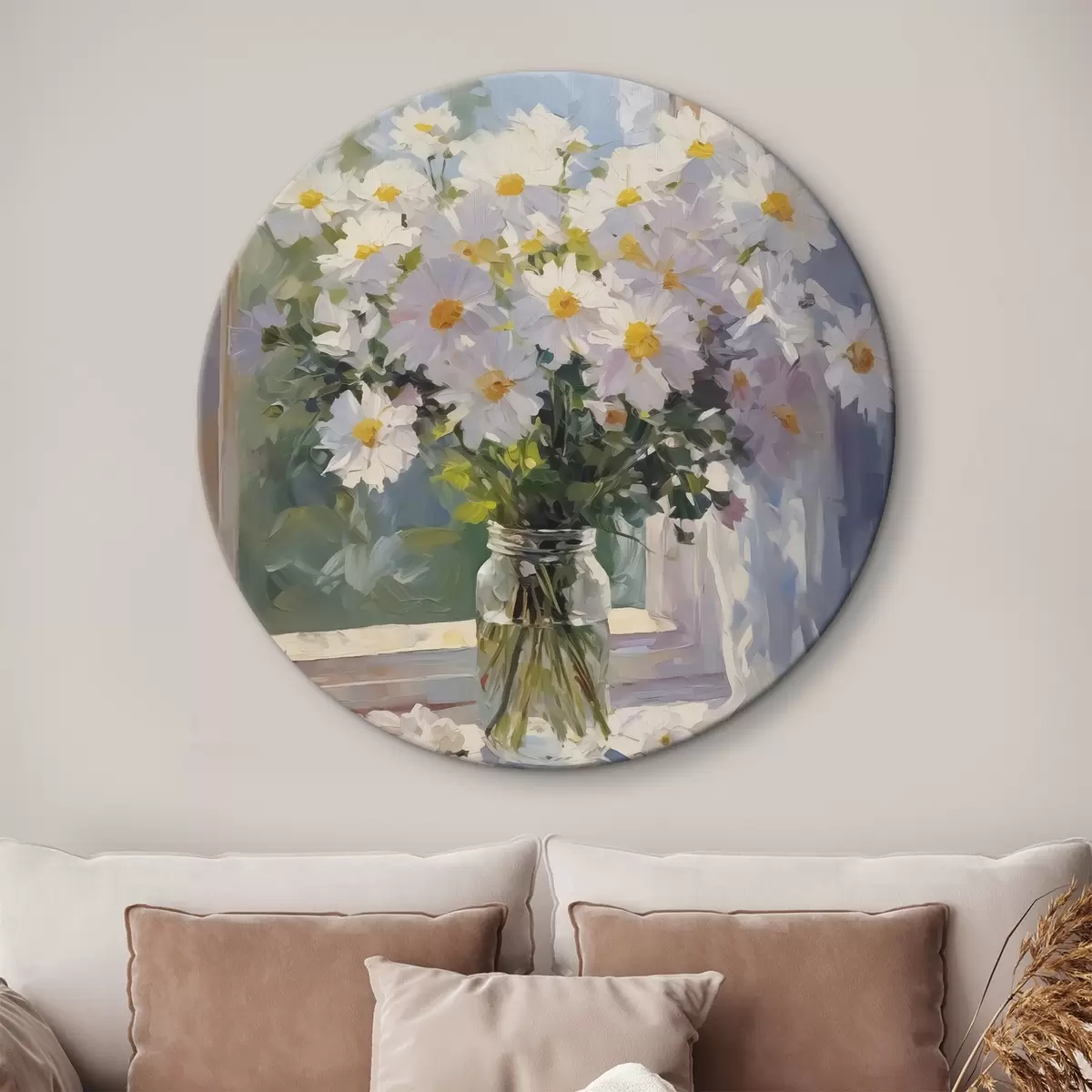 Кругла картина Ромашки у вазі з імітацією живопису Nr r43434