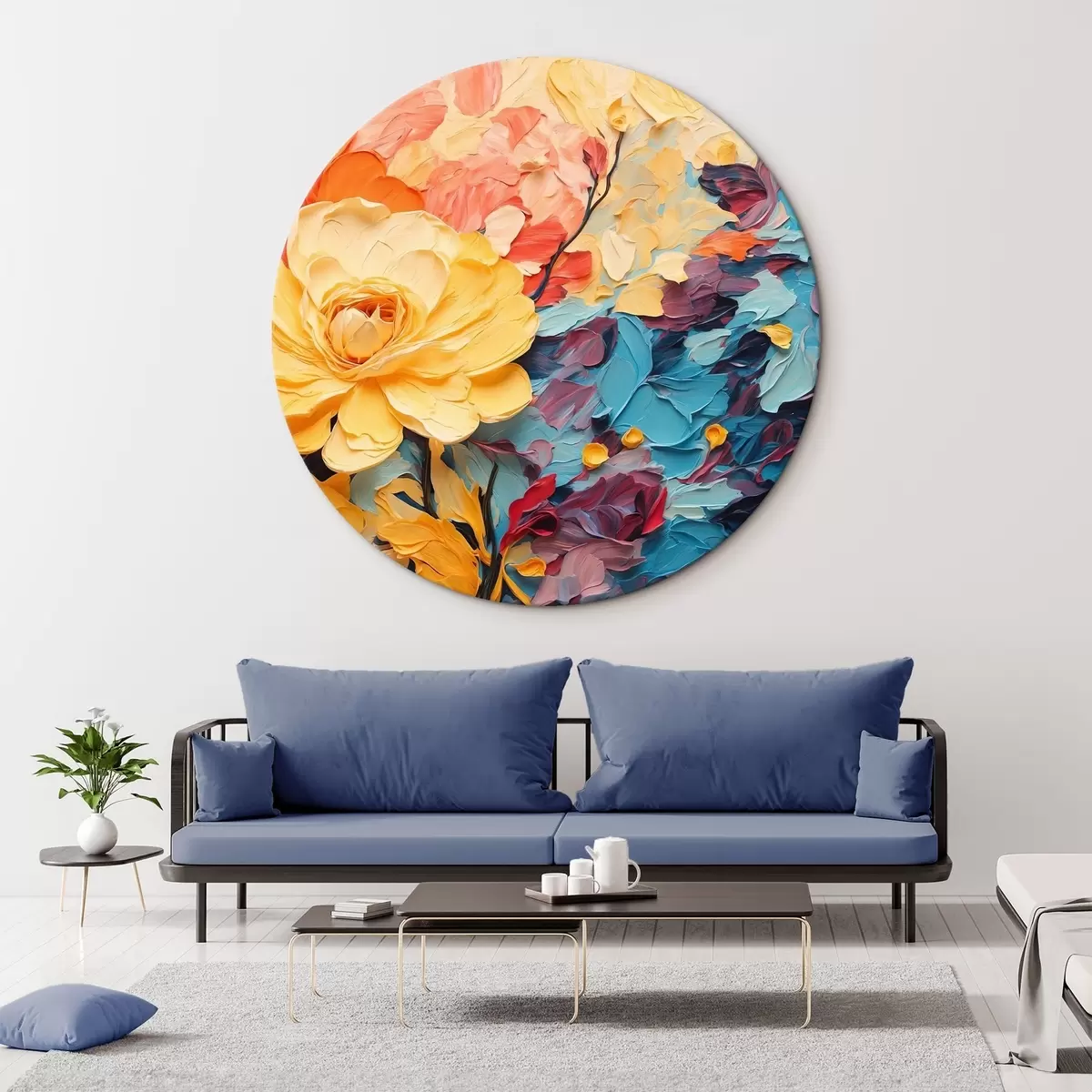 Кругла картина Квіти на абстрактному тлі в стилі олійного живопису Nr r43442