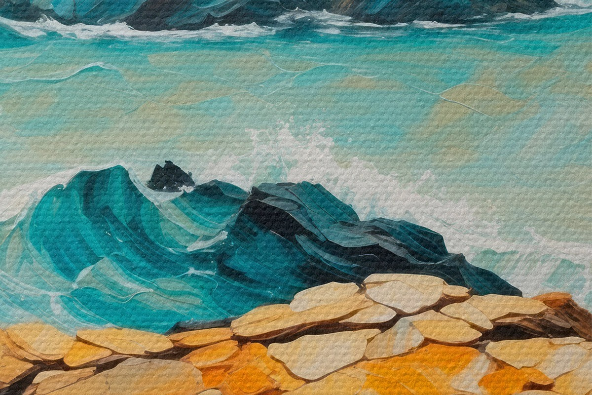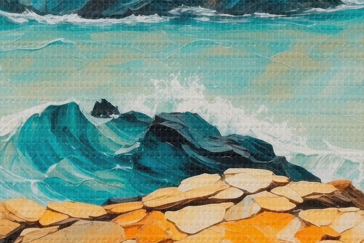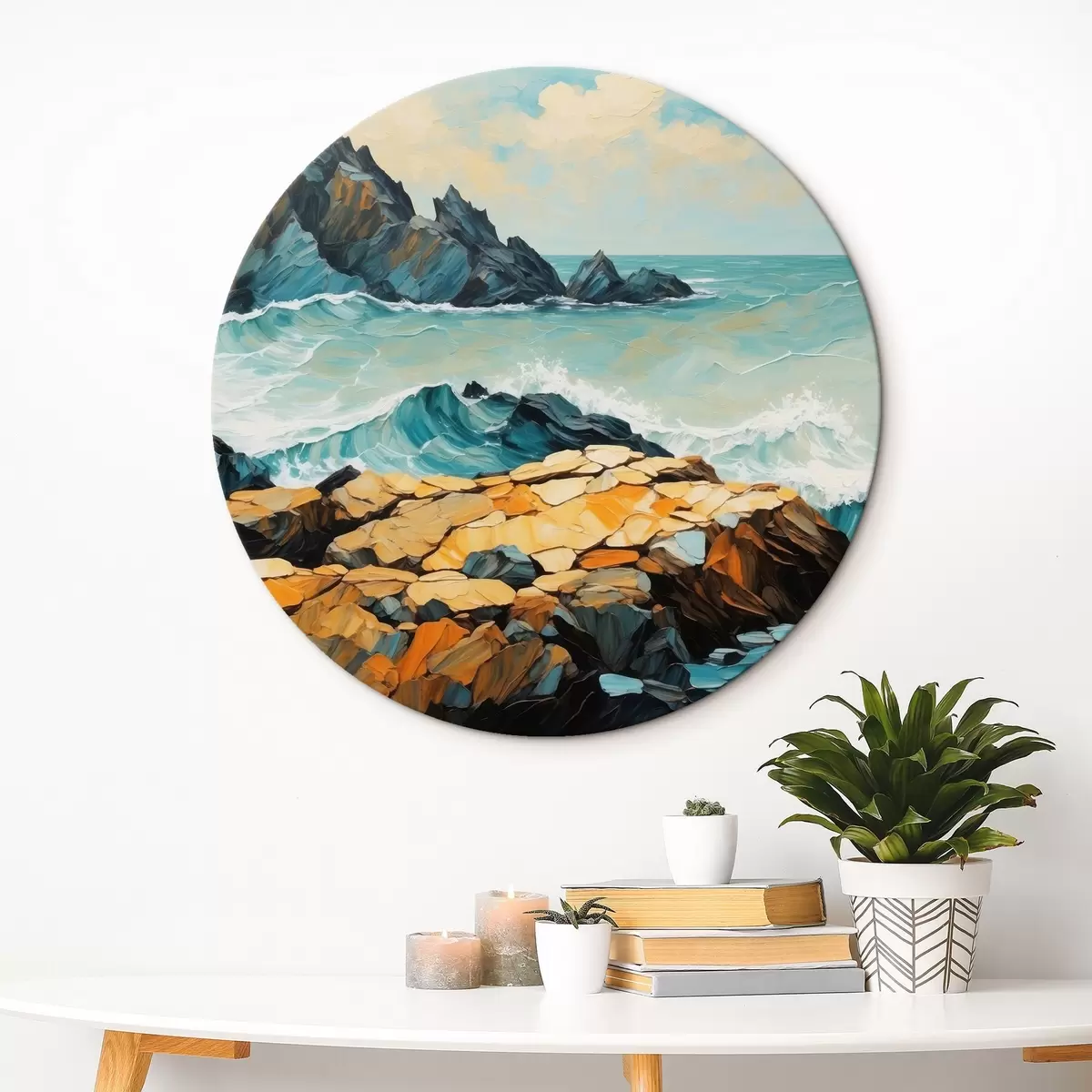 Кругла картина Хвилі розбиваються об скелі Nr r43458