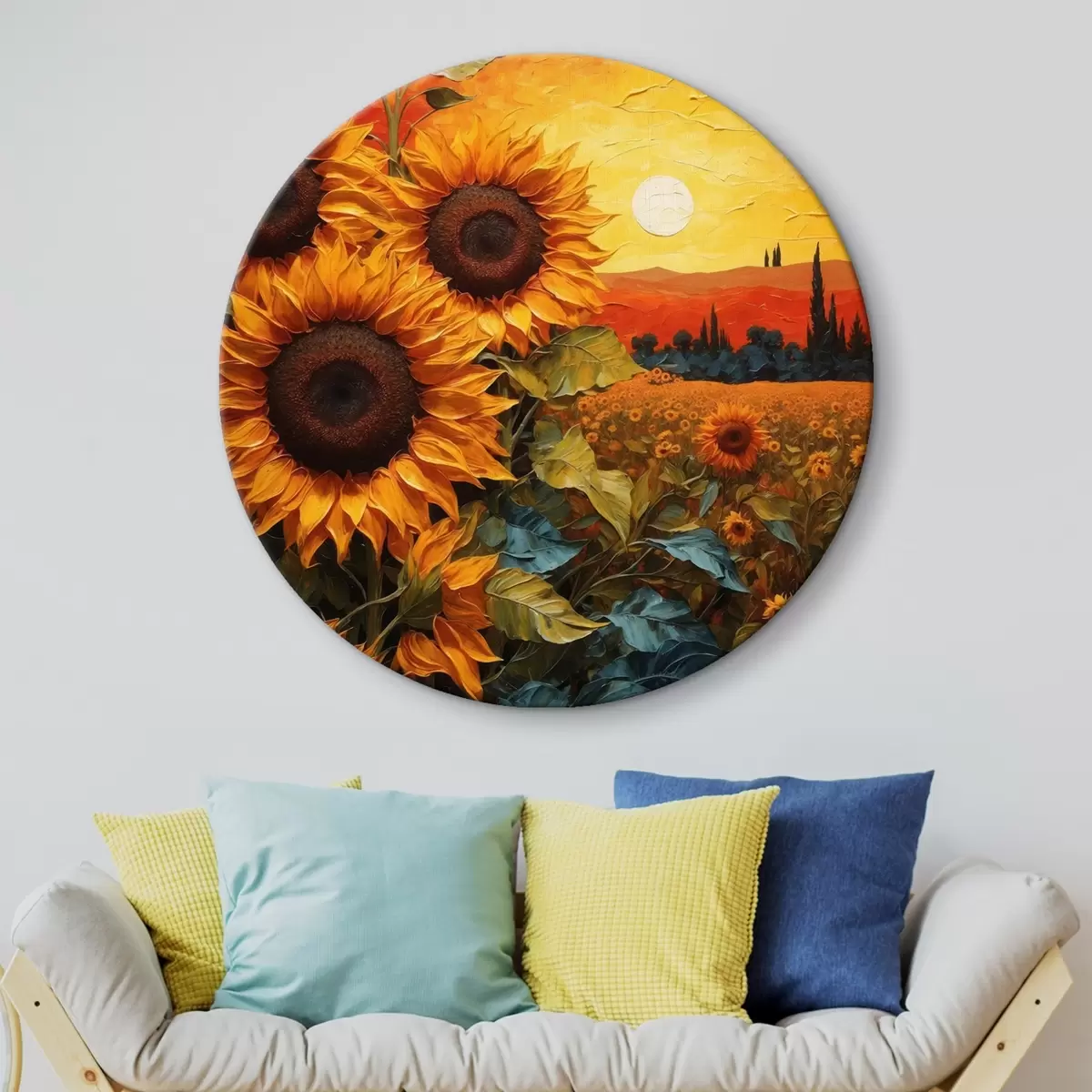 Кругла картина Соняшникове поле на заході сонця Nr r43460