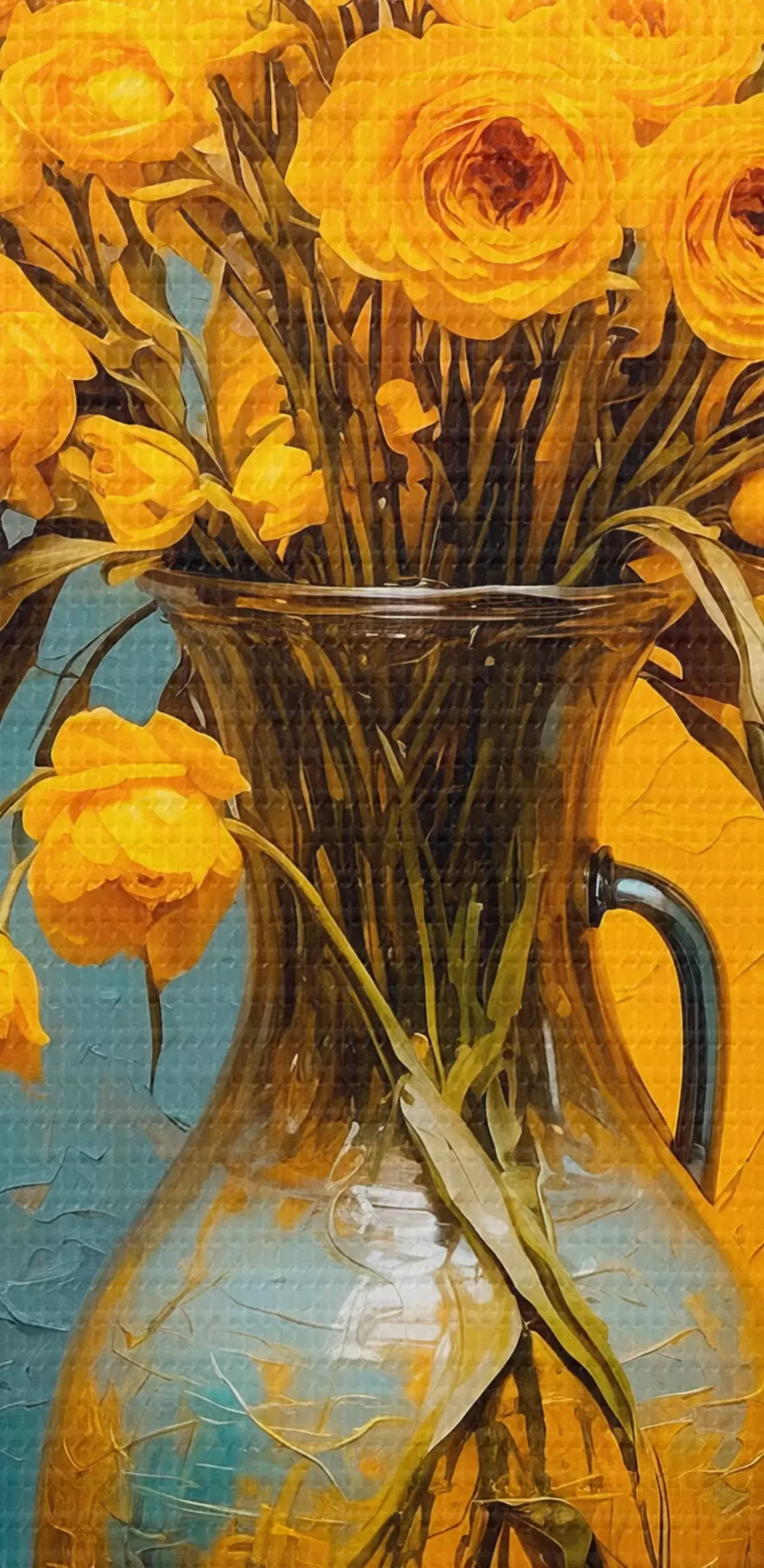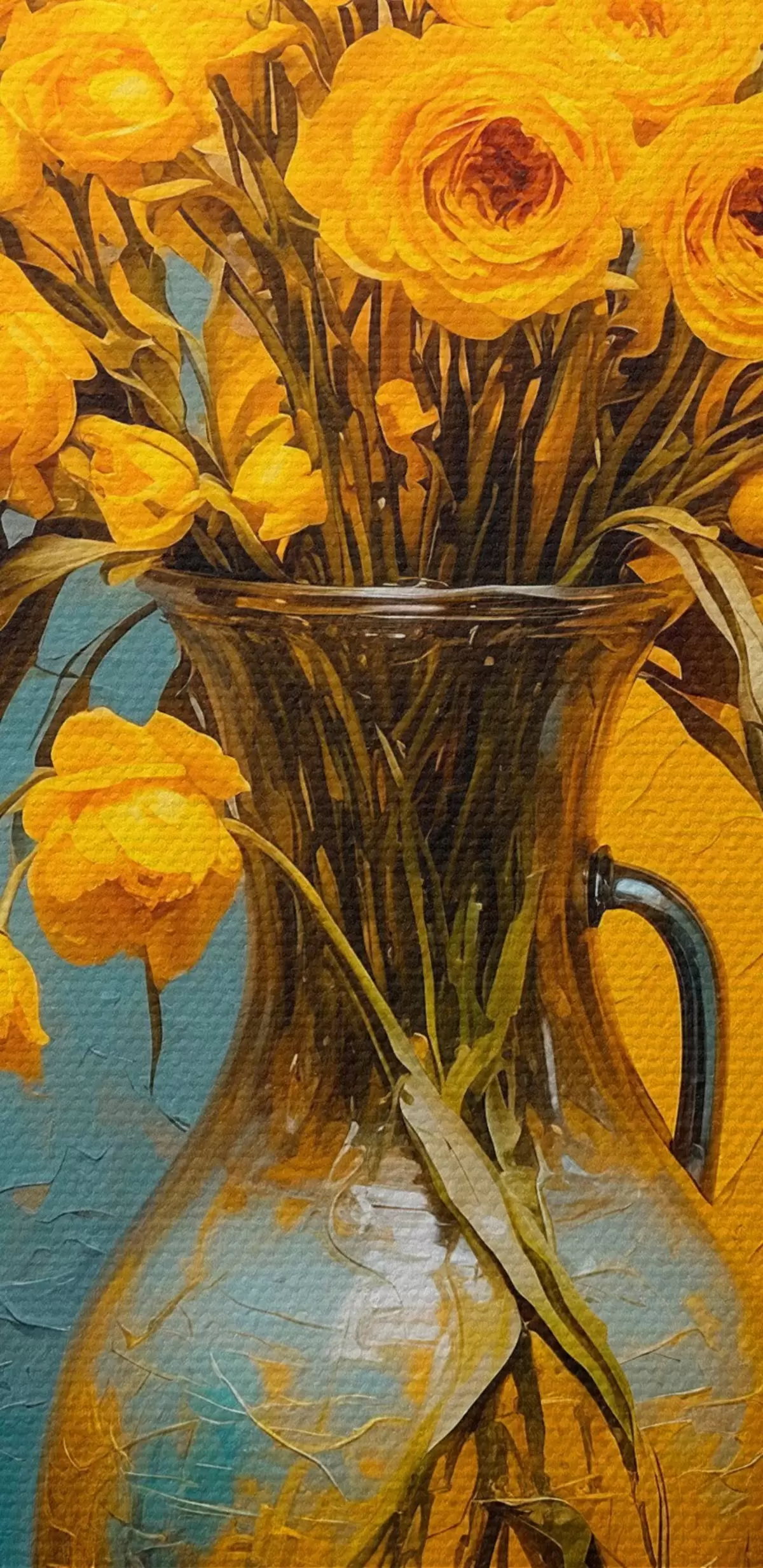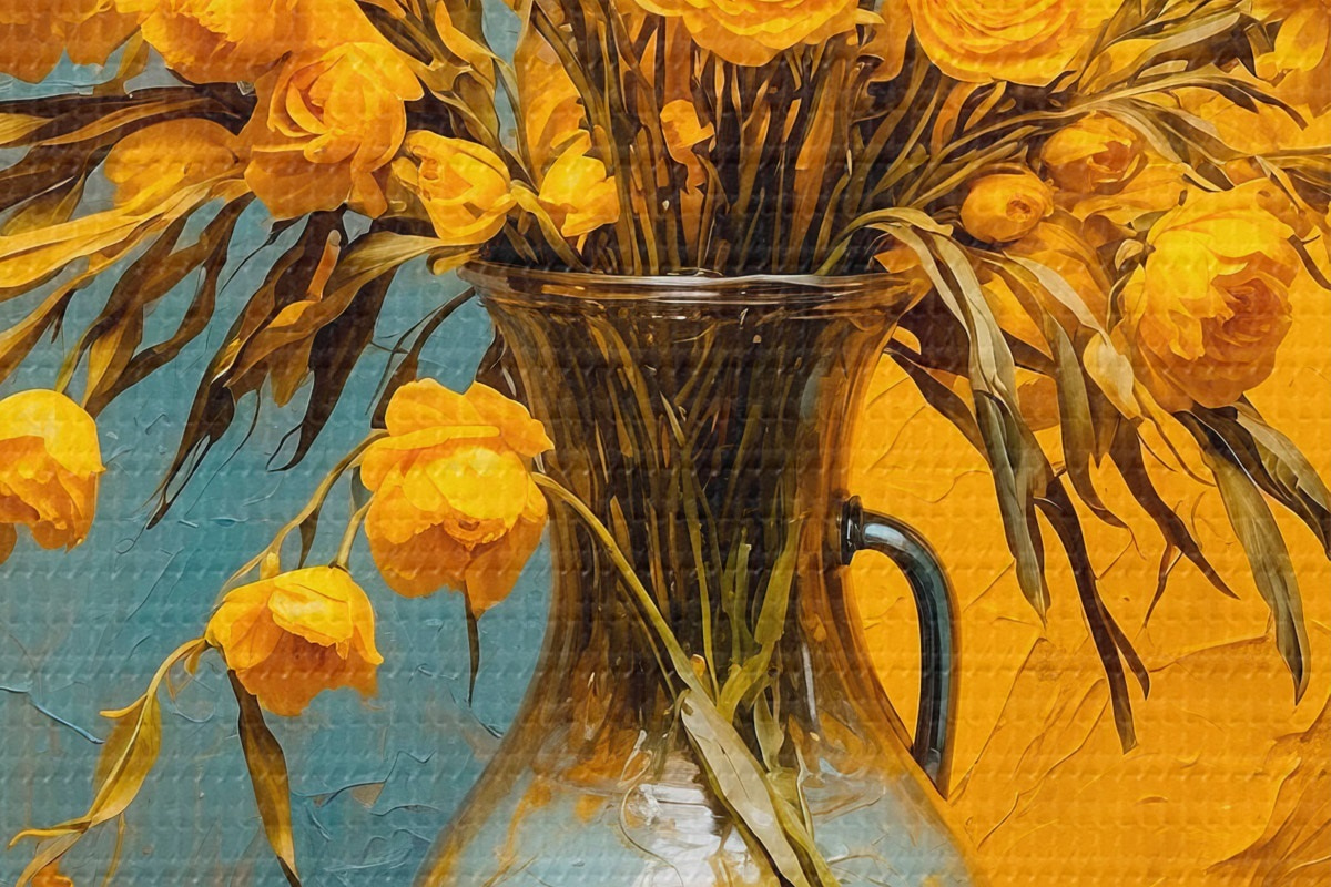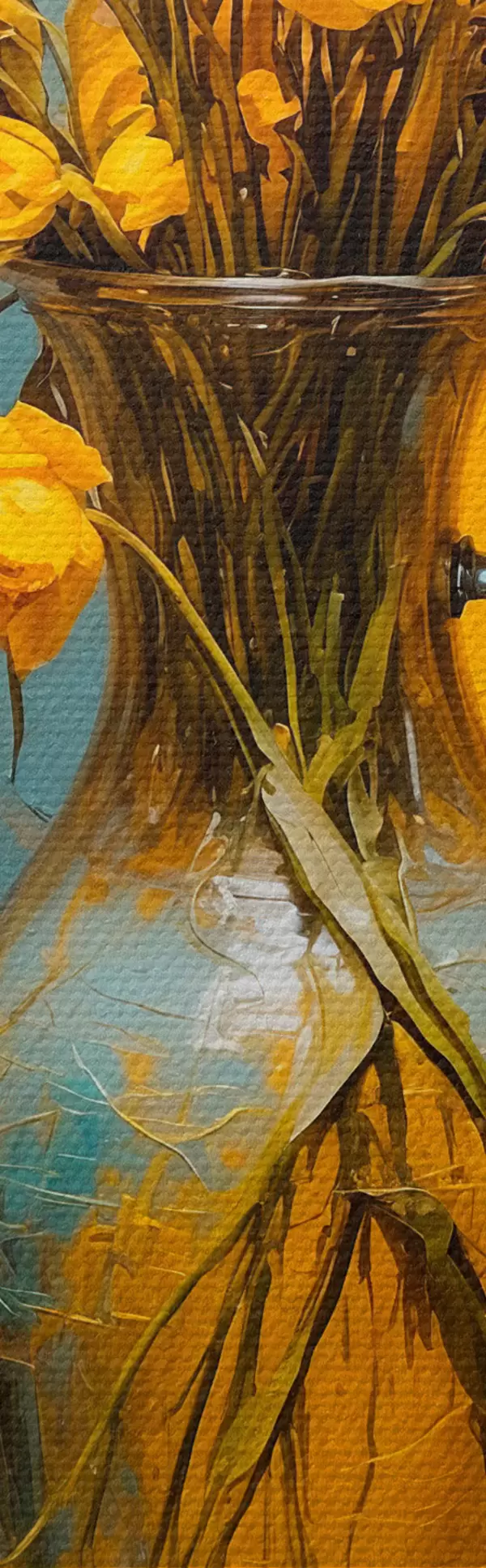 Кругла картина Жовті квіти у вазі на столі Nr r43462