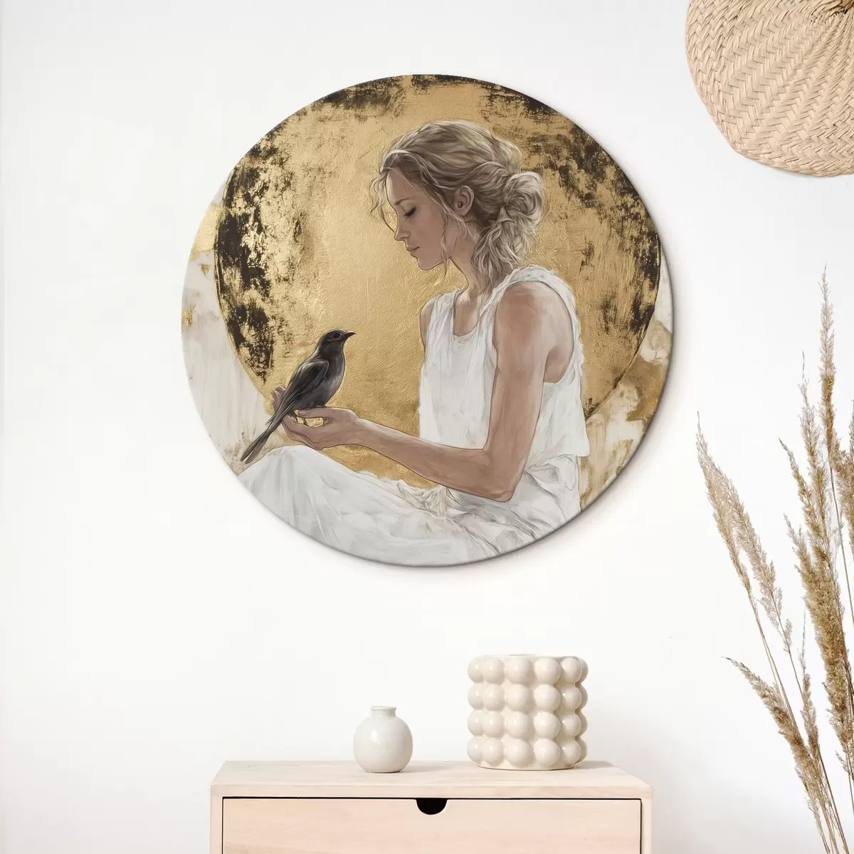Кругла картина Красива жінка з птахом, Греція, малюнок в стилі акрилу Nr r43503