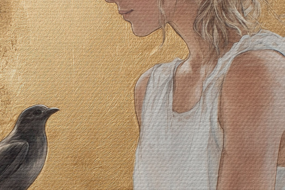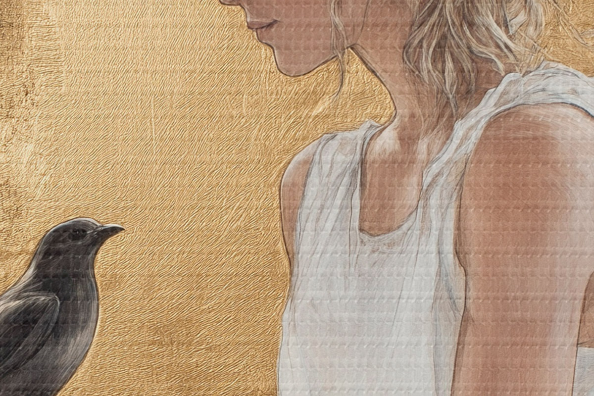 Кругла картина Красива жінка з птахом, Греція, малюнок в стилі акрилу r43503