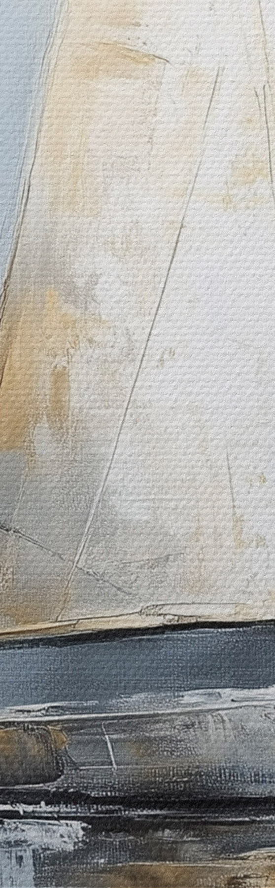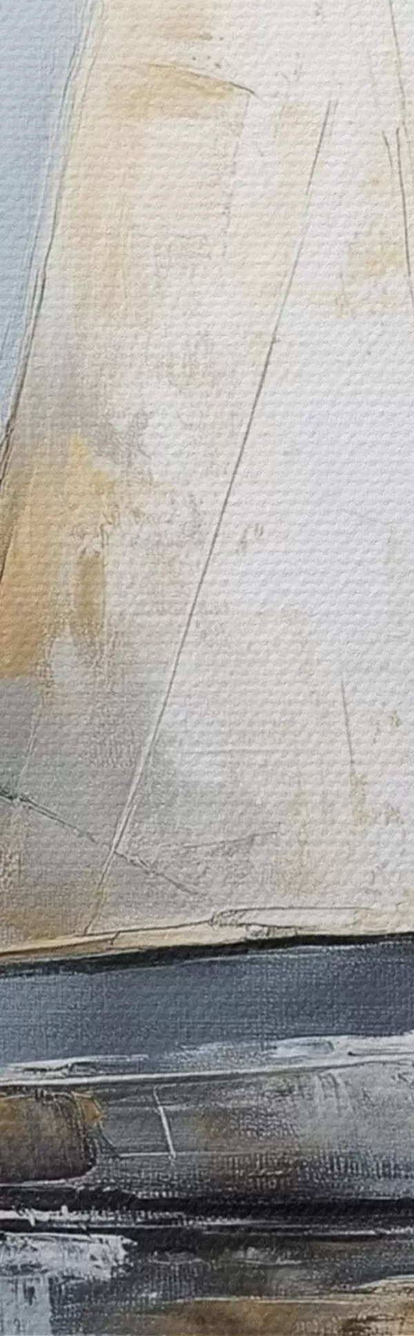 Кругла картина Вітрильники з відображенням у воді, малюнок олією, сірі кольори r43506