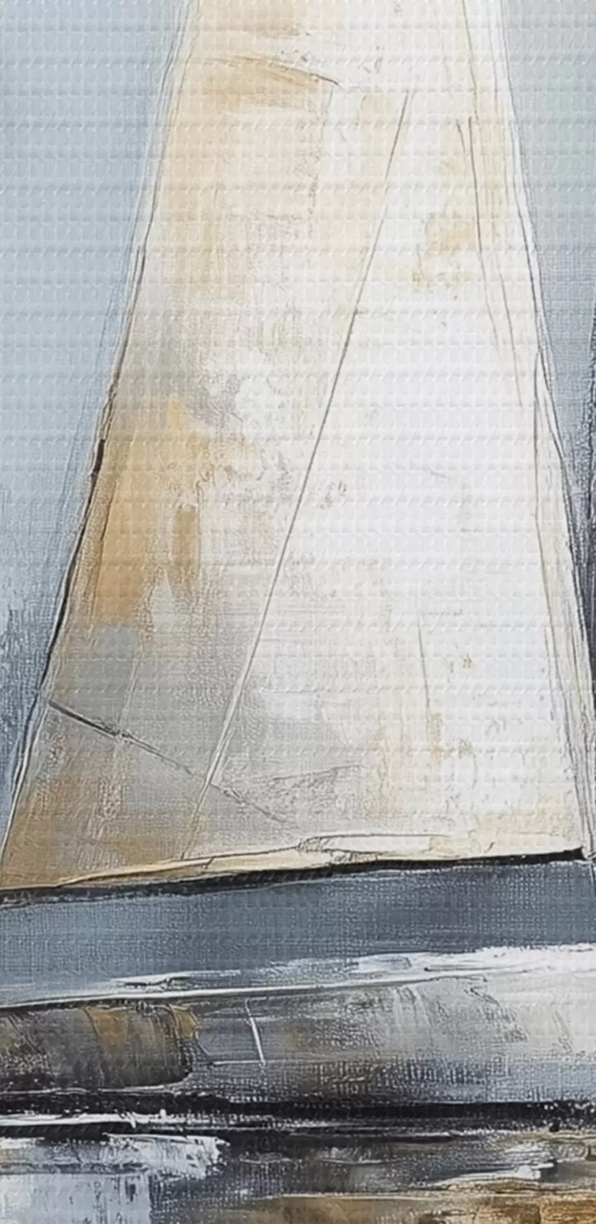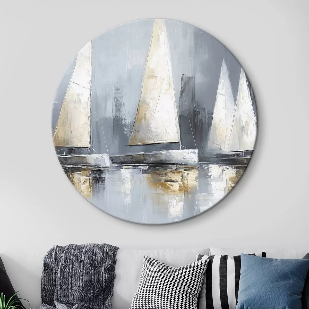 Кругла картина Вітрильники з відображенням у воді, малюнок олією, сірі кольори Nr r43506