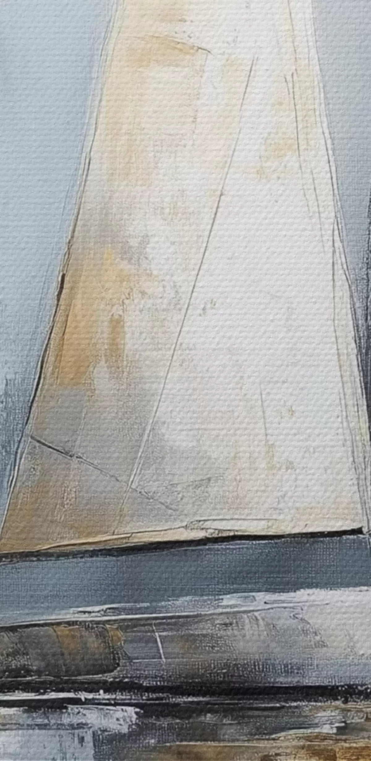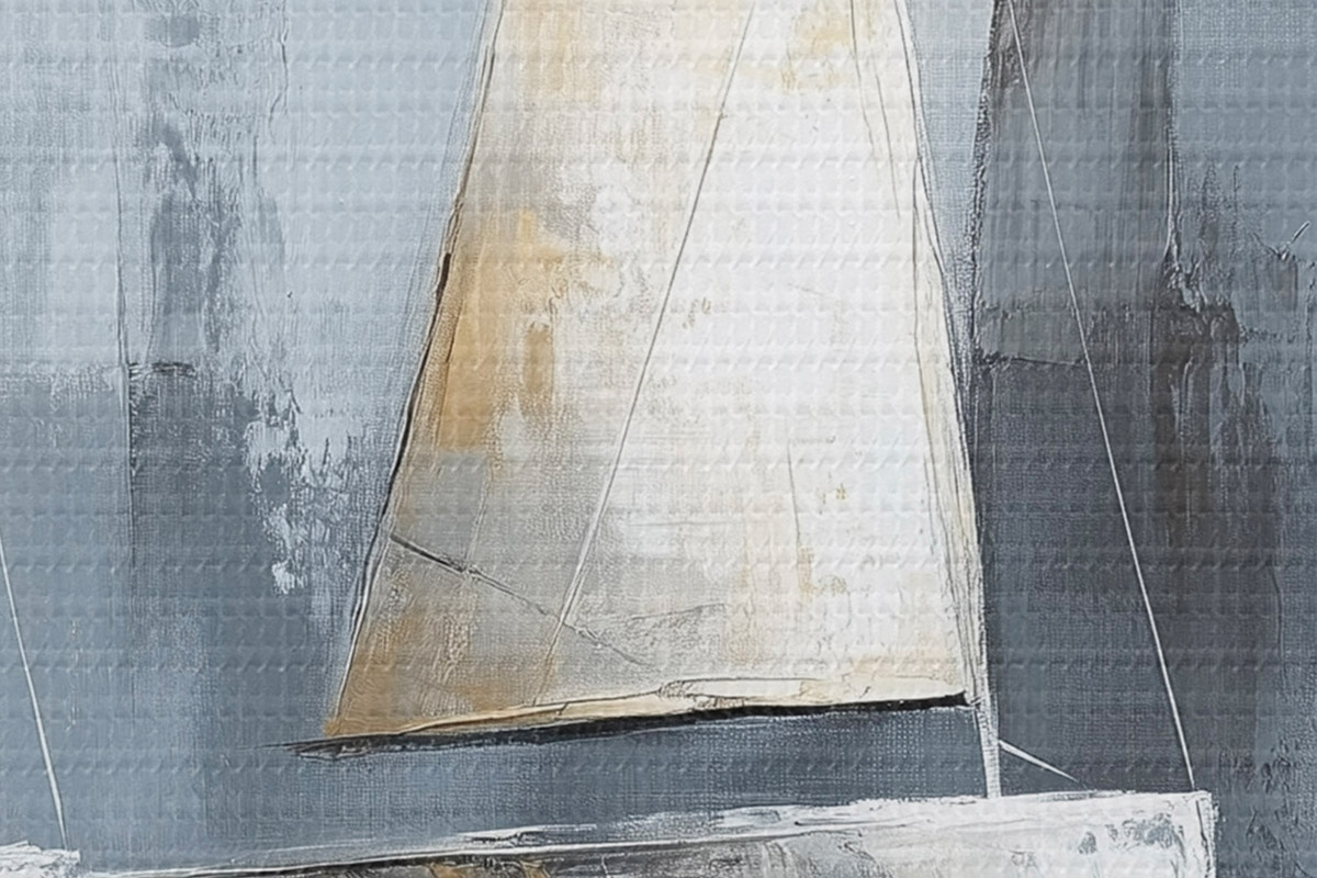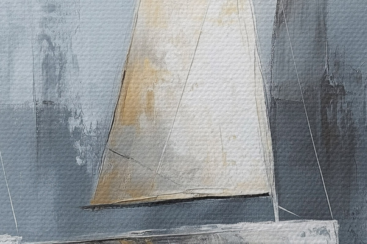 Кругла картина Вітрильники з відображенням у воді, малюнок олією, сірі кольори r43506
