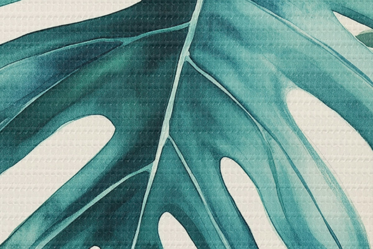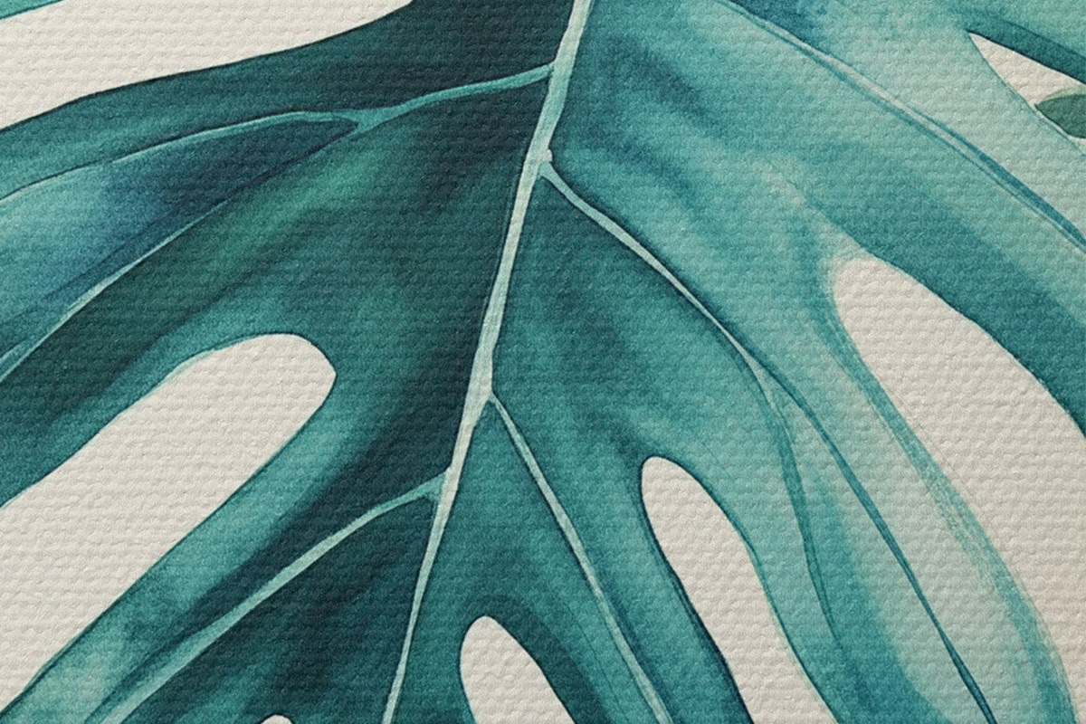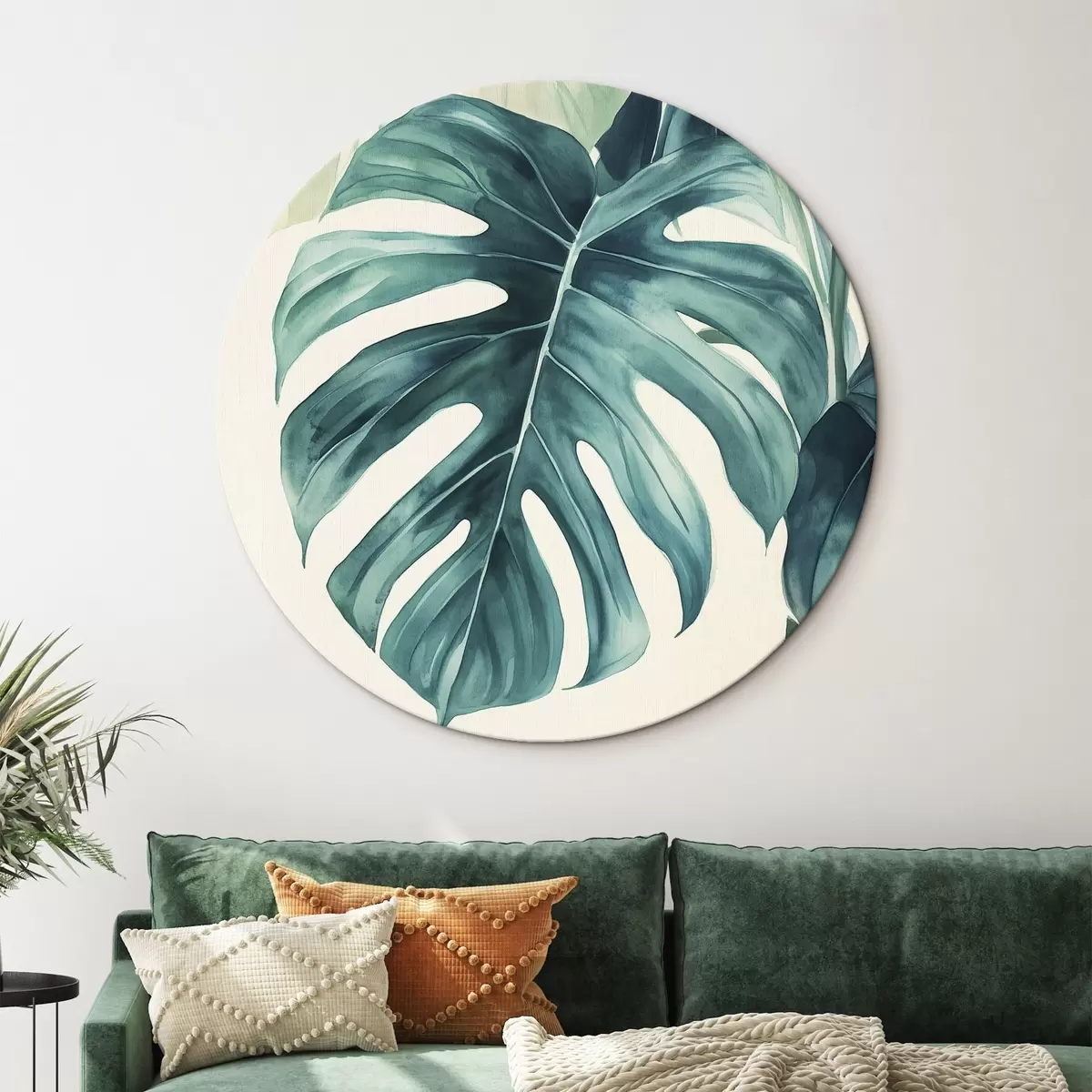 Кругла картина Листя пальми монстери, акварельний стиль, квітковий, тропічний Nr r43507