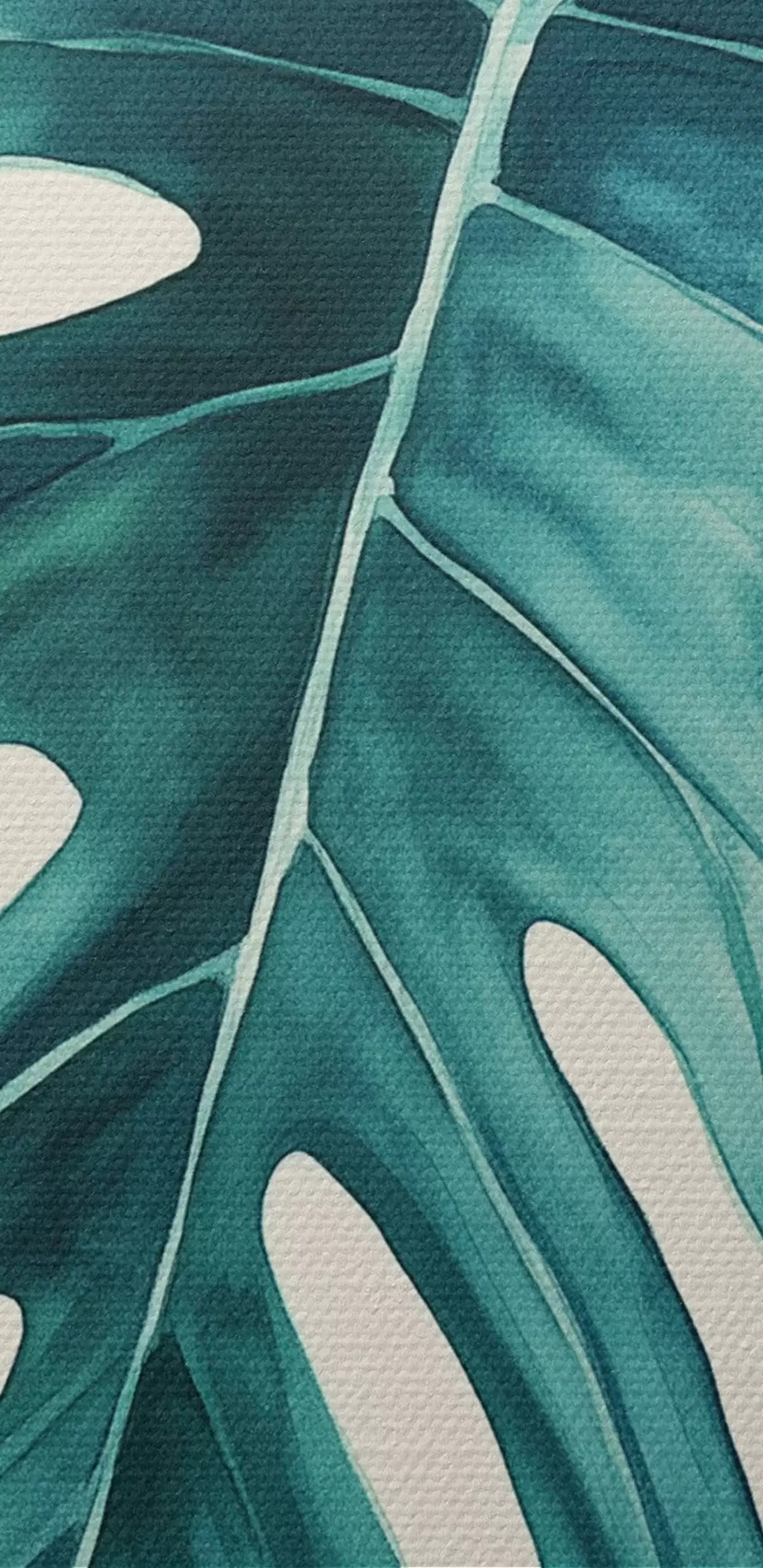 Кругла картина Листя пальми монстери, акварельний стиль, квітковий, тропічний r43507