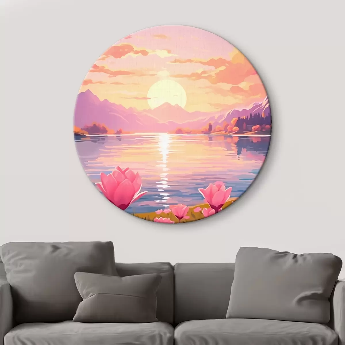 Кругла картина Пейзаж зі ставком на тлі гір Nr r43523