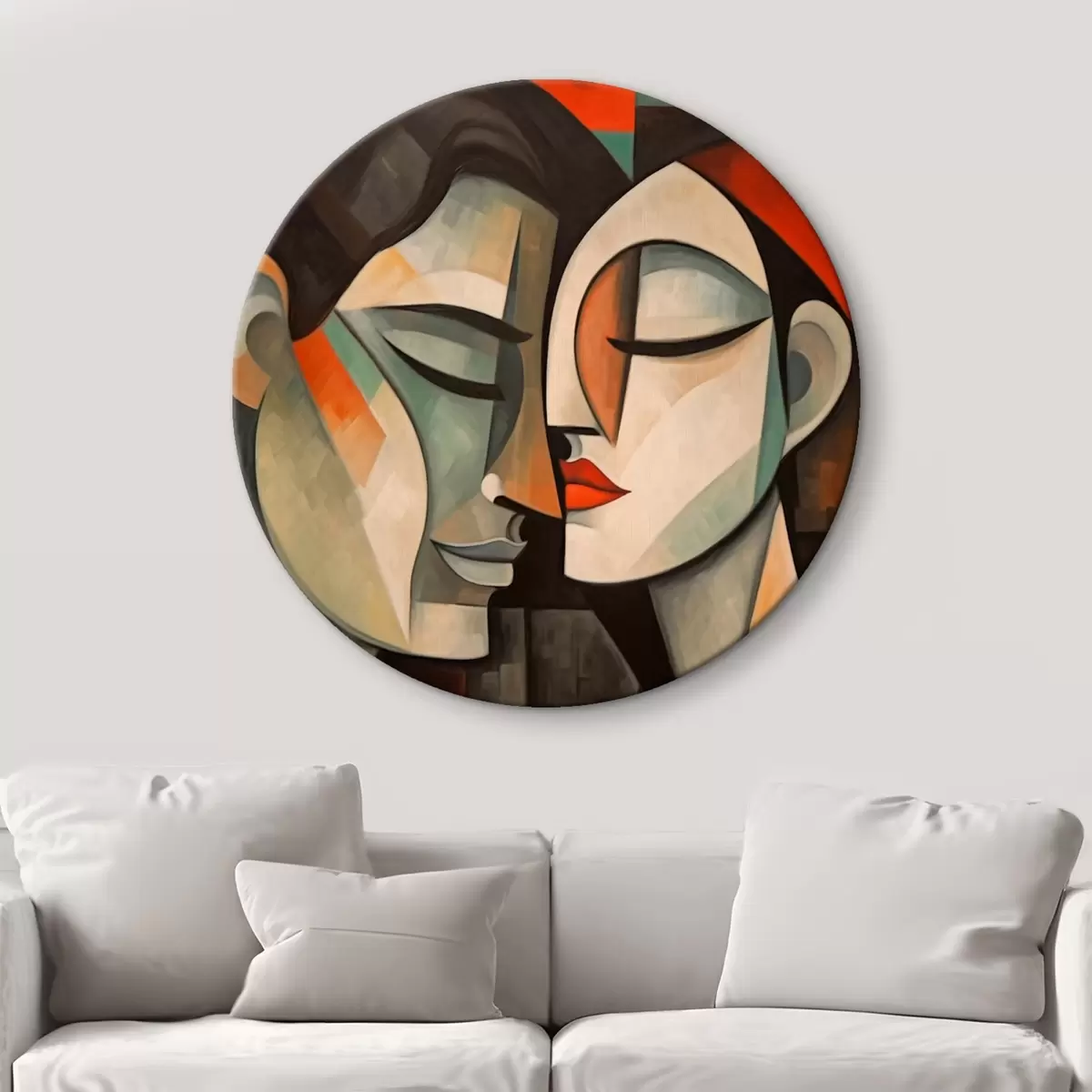 Кругла картина Абстрактний портрет жінки в теплих тонах Nr r43524