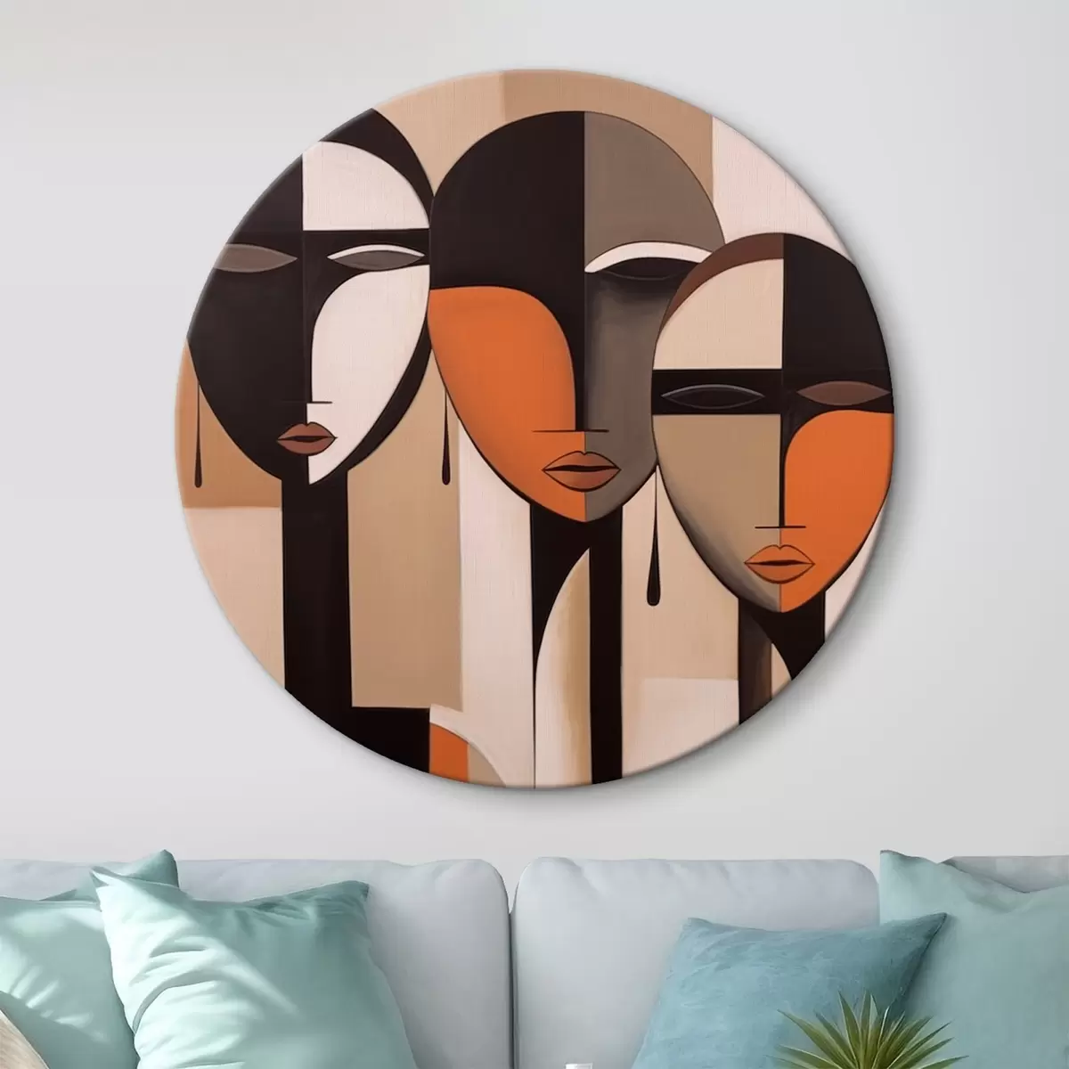 Кругла картина Абстрактні обличчя в гармонійних кольорах r43525