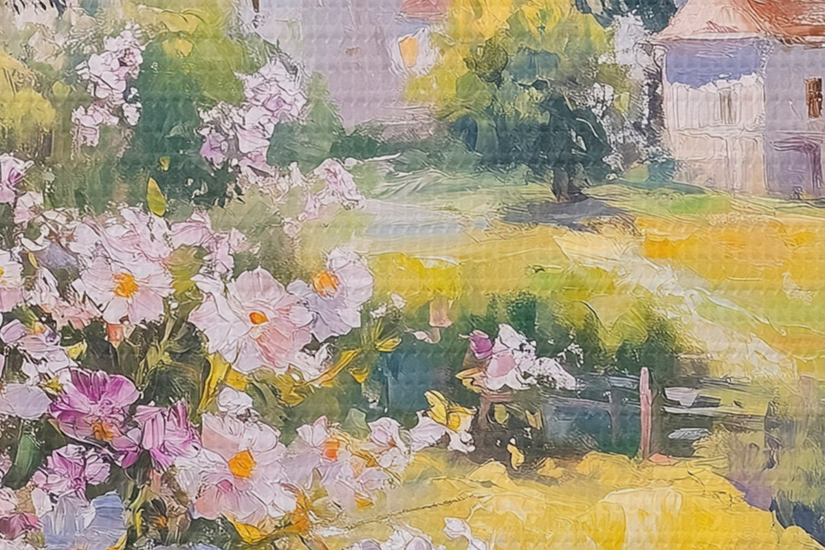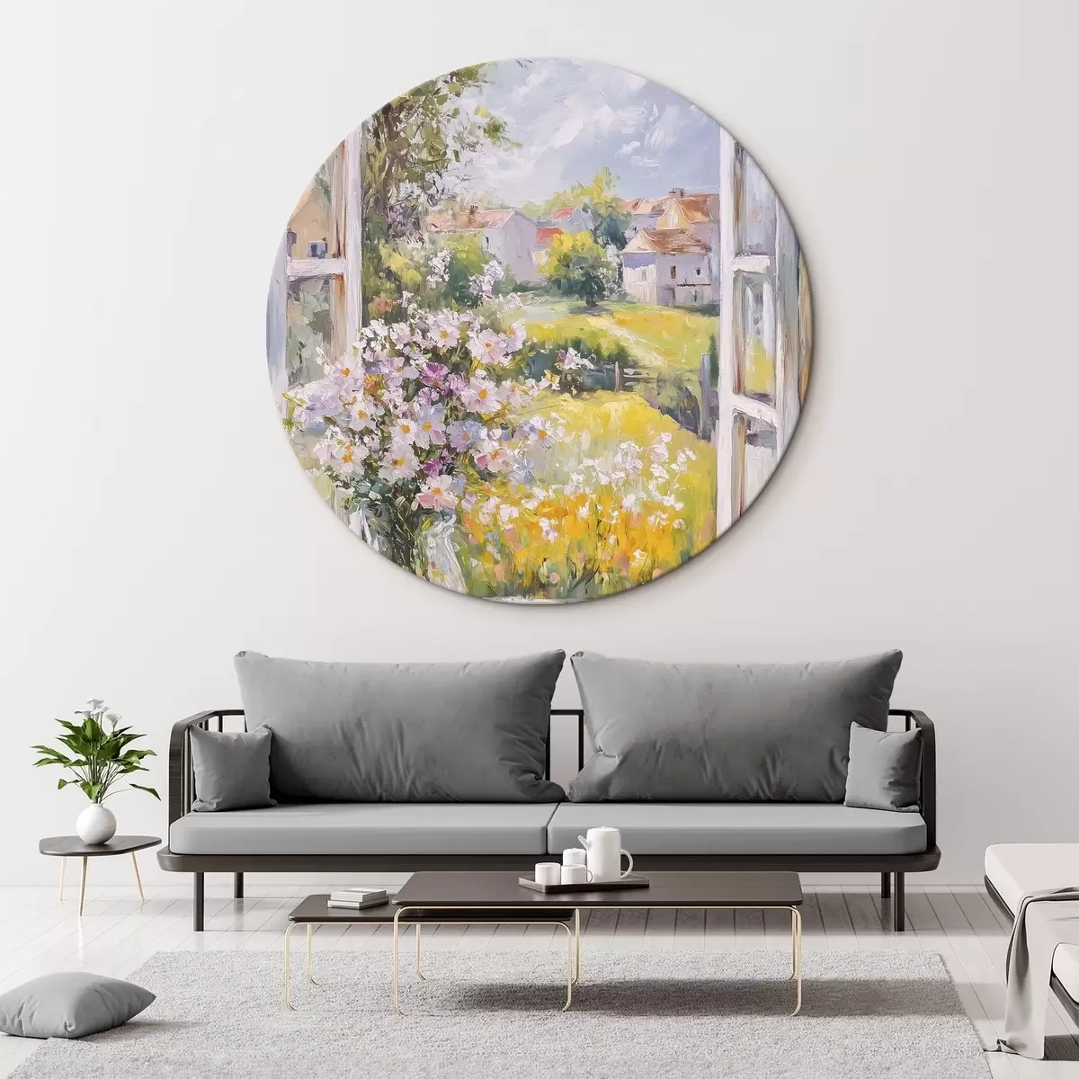 Кругла картина Літо в селі, сільський, малюнок олією, квіти у вазі Nr r43889