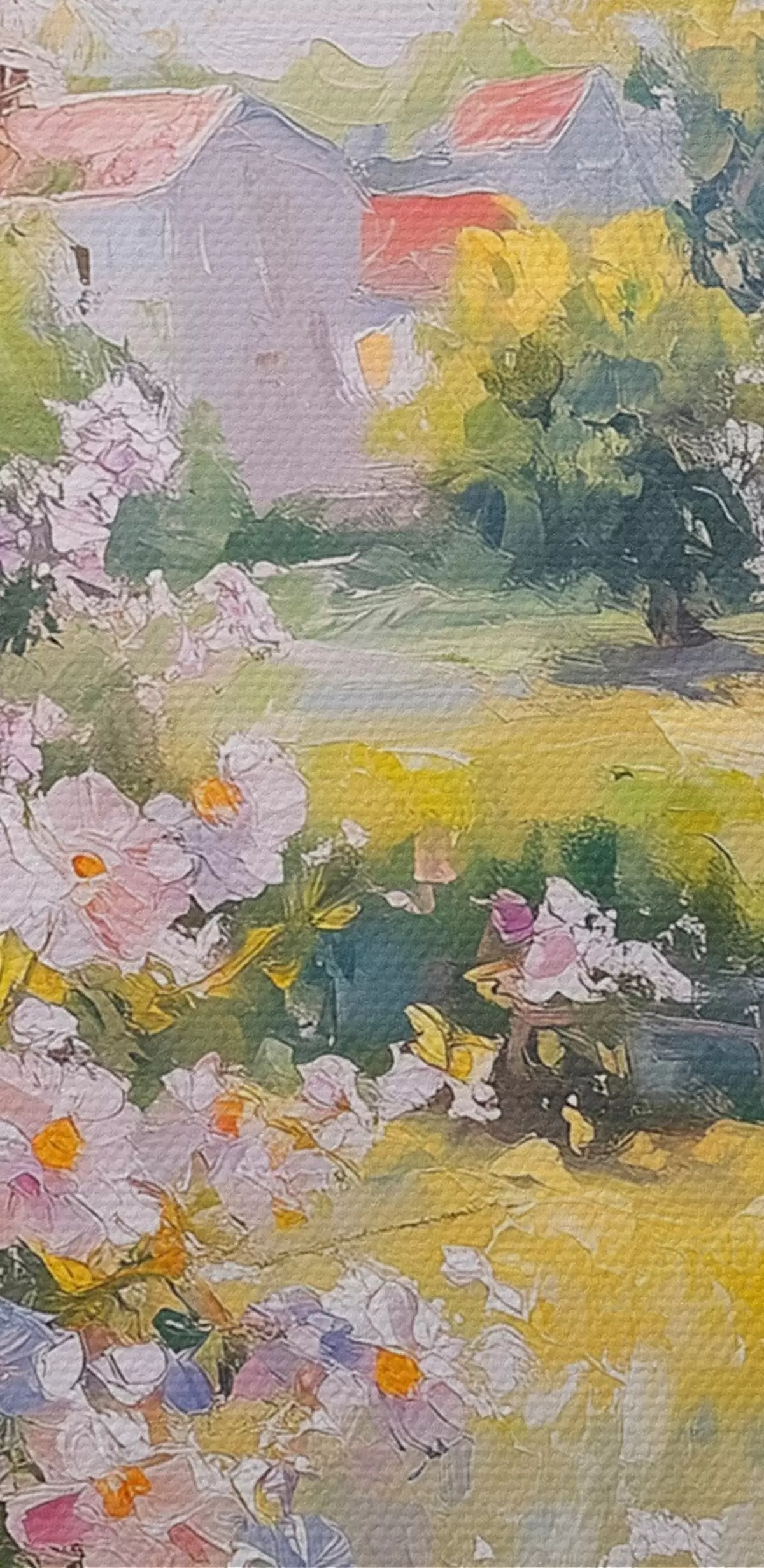 Кругла картина Літо в селі, сільський, малюнок олією, квіти у вазі r43889