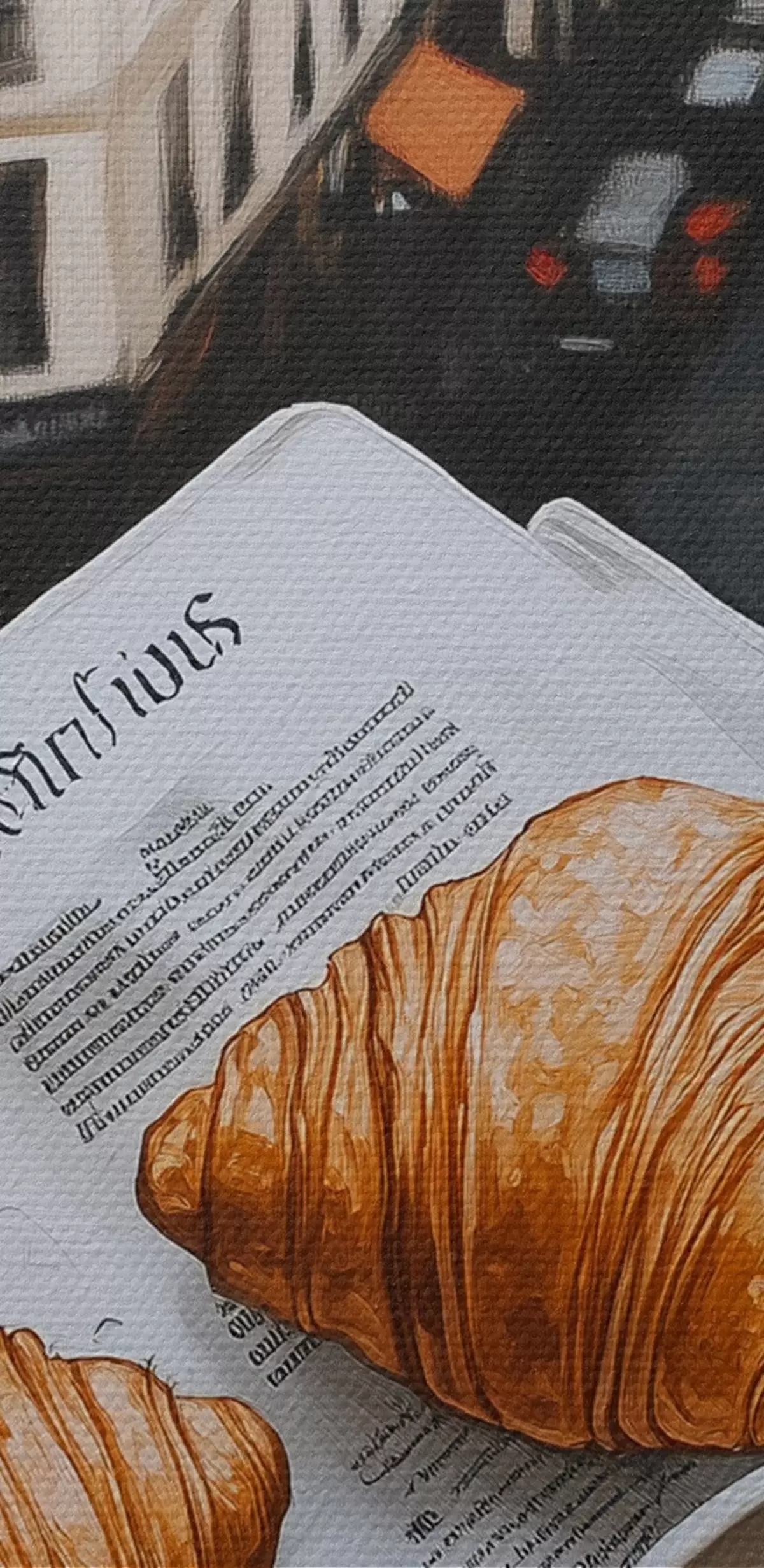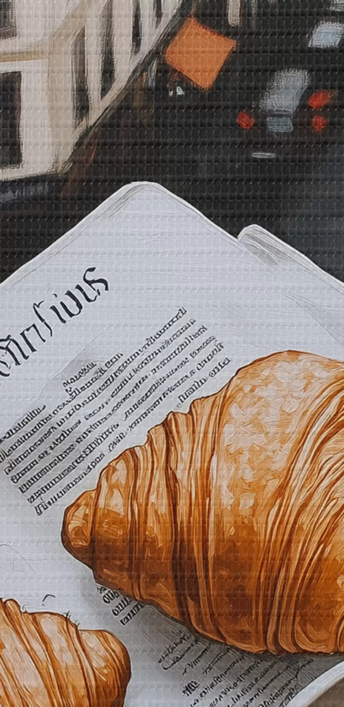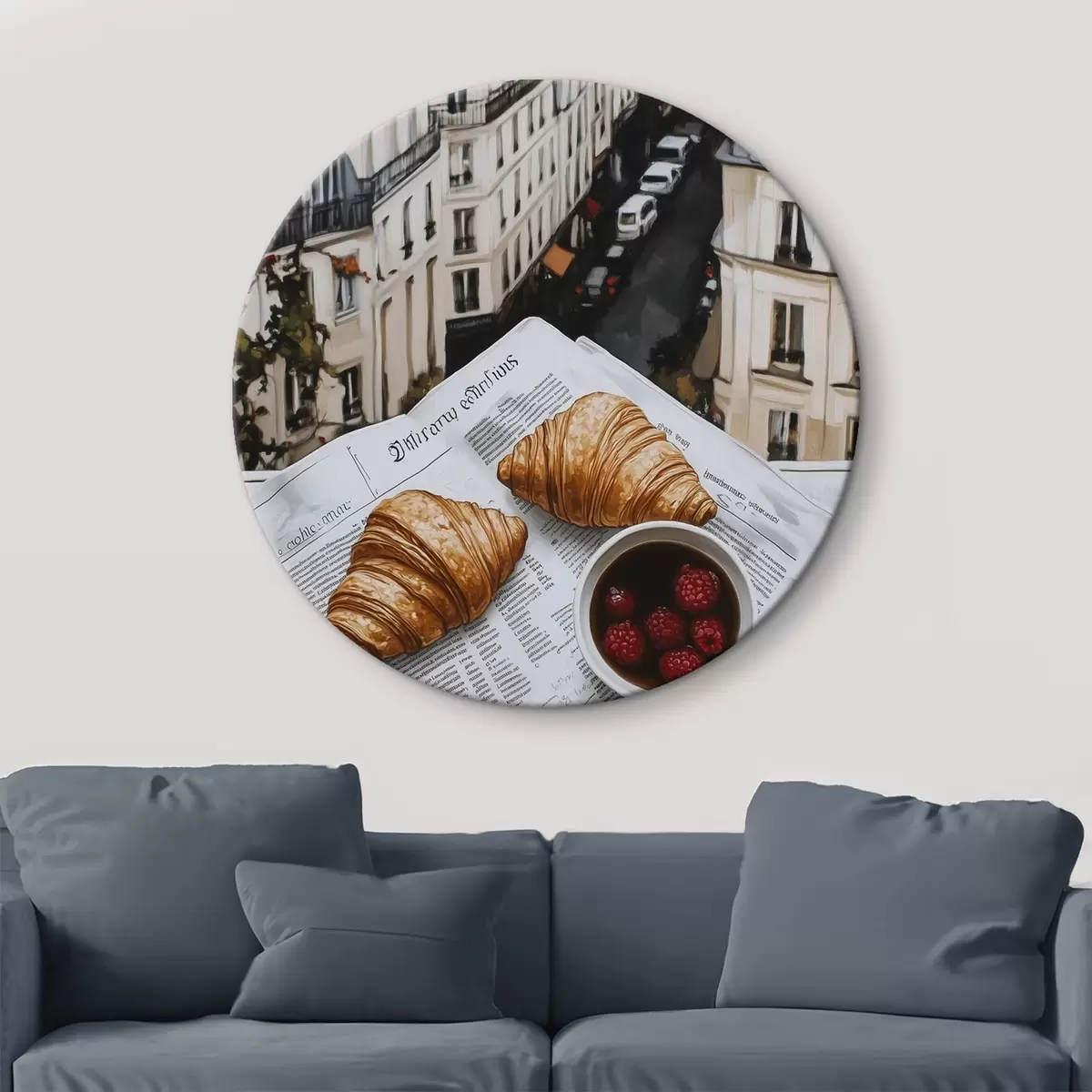 Кругла картина Ранкова кава з круасанами, міська вулиця, архітектура, олійний стиль Nr r43891