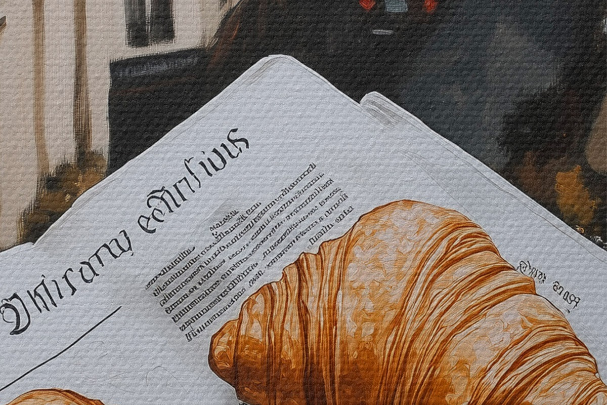 Кругла картина Ранкова кава з круасанами, міська вулиця, архітектура, олійний стиль r43891