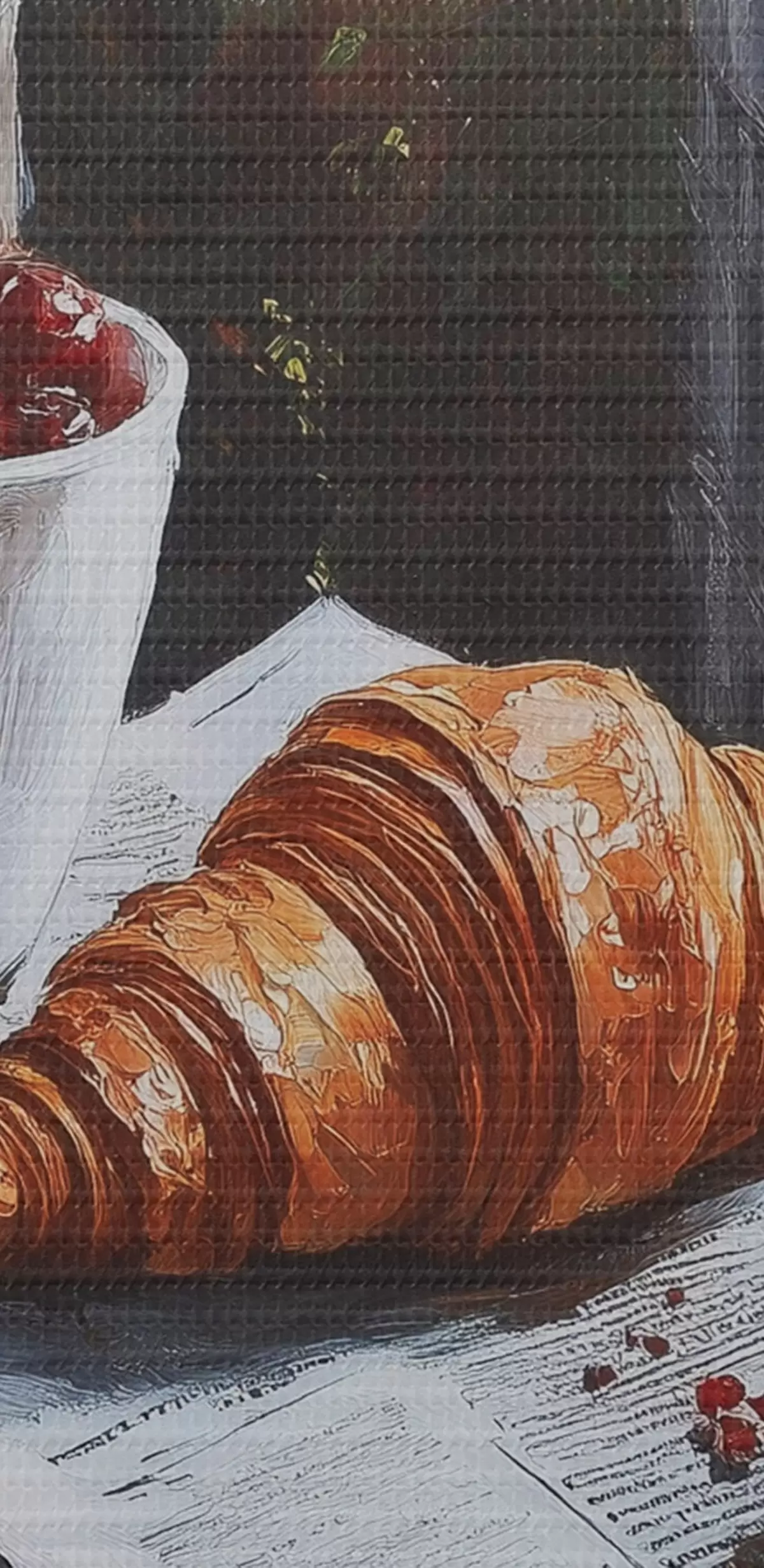 Кругла картина Паризький ранок, кава з круасанами, вид на місто, малюнок олією Nr r43892