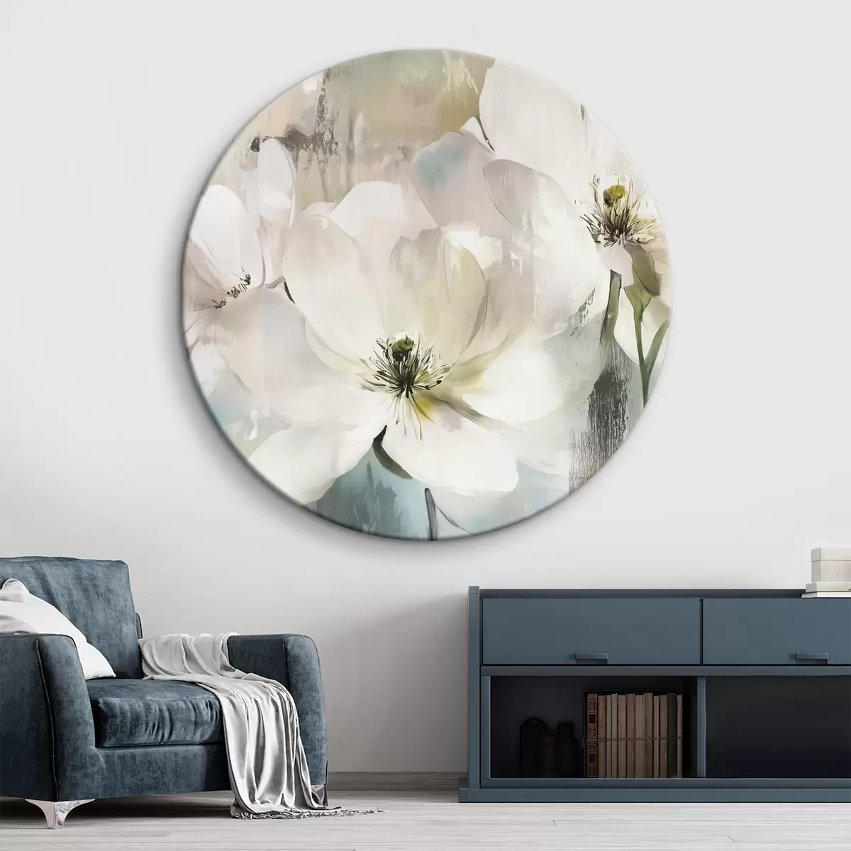 Кругла картина Білі квіти в стилі олійних фарб Nr r43903