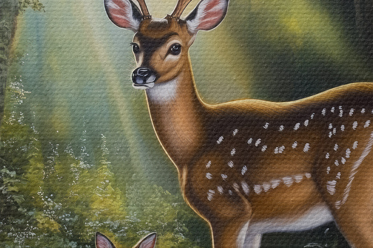 Кругла картина Олень і оленя в лісі r43915
