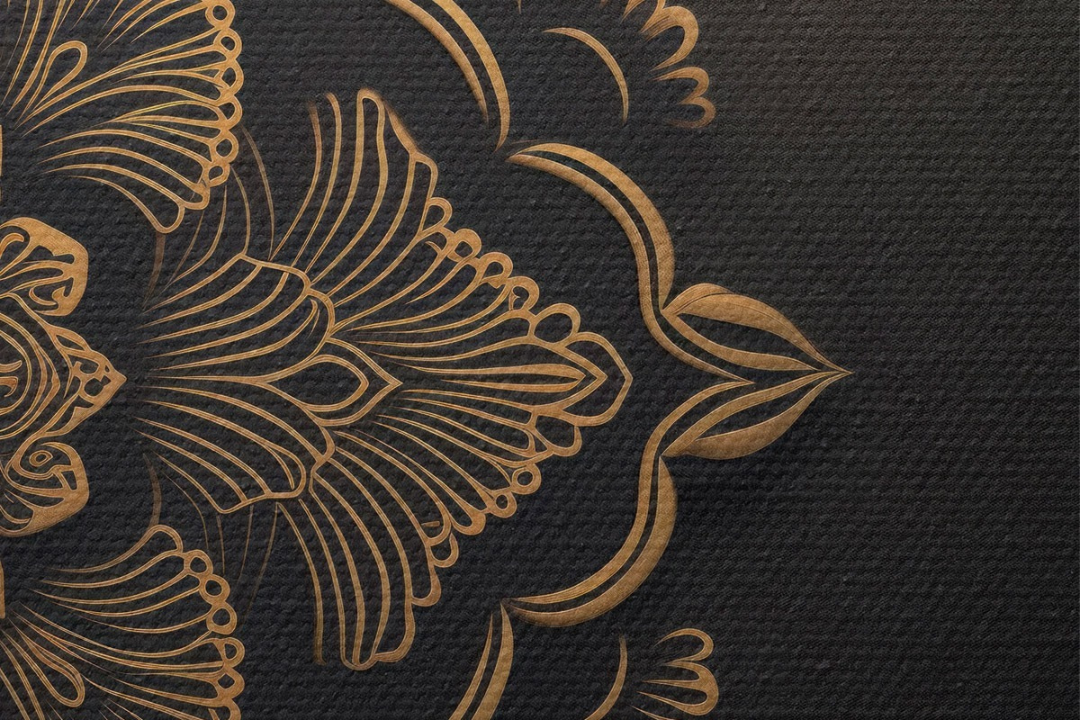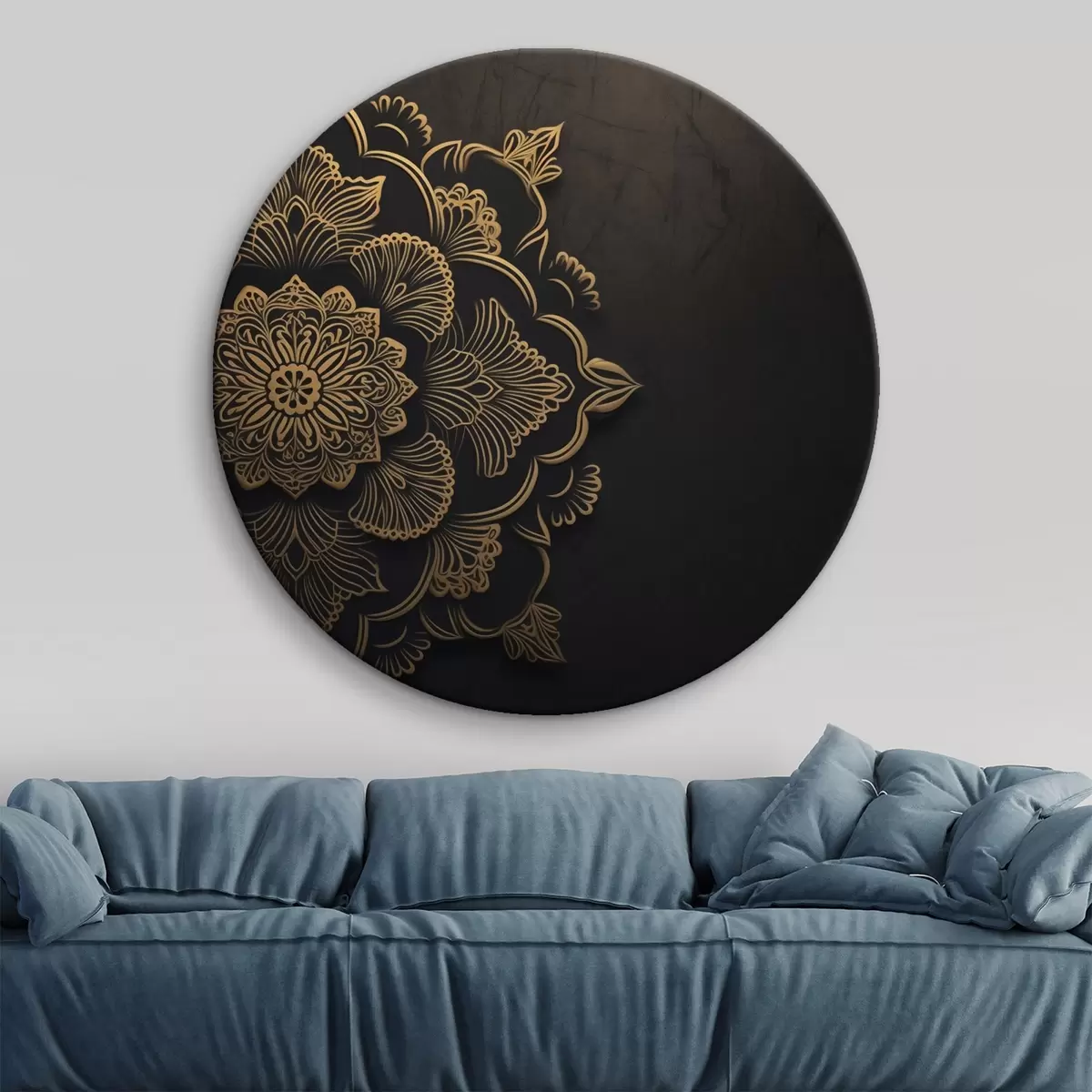 Кругла картина Жовті візерунки на чорному тлі Nr r43943