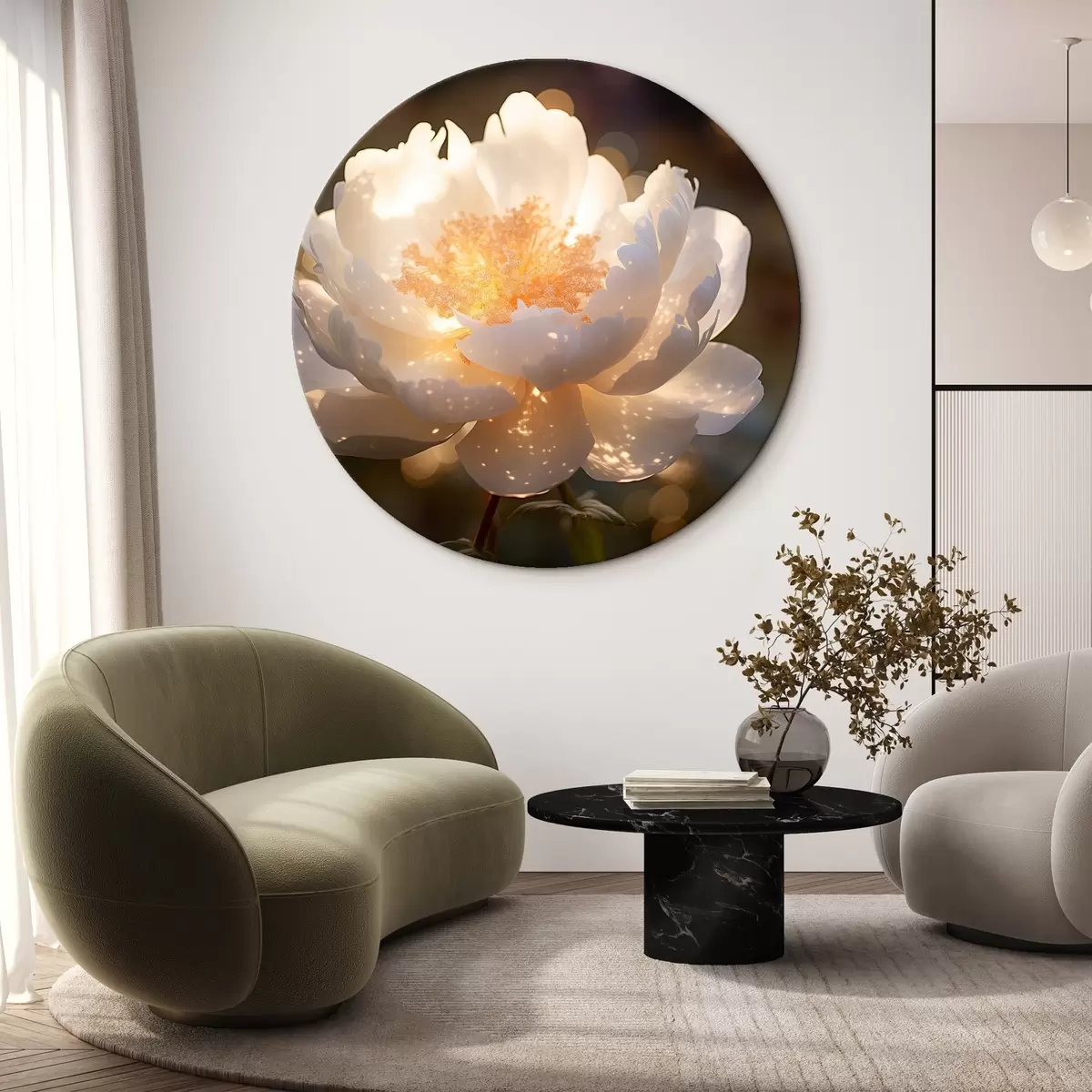 Кругла картина Біла квітка з серединкою, що світиться Nr r43949