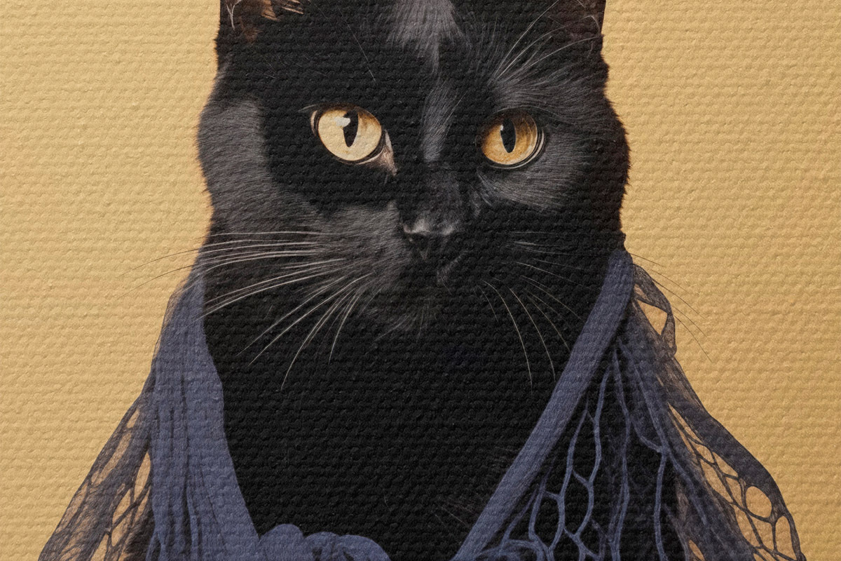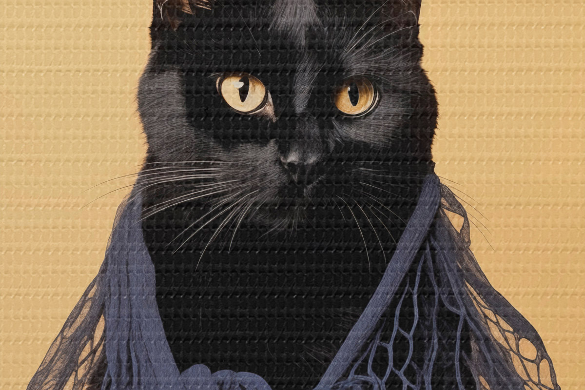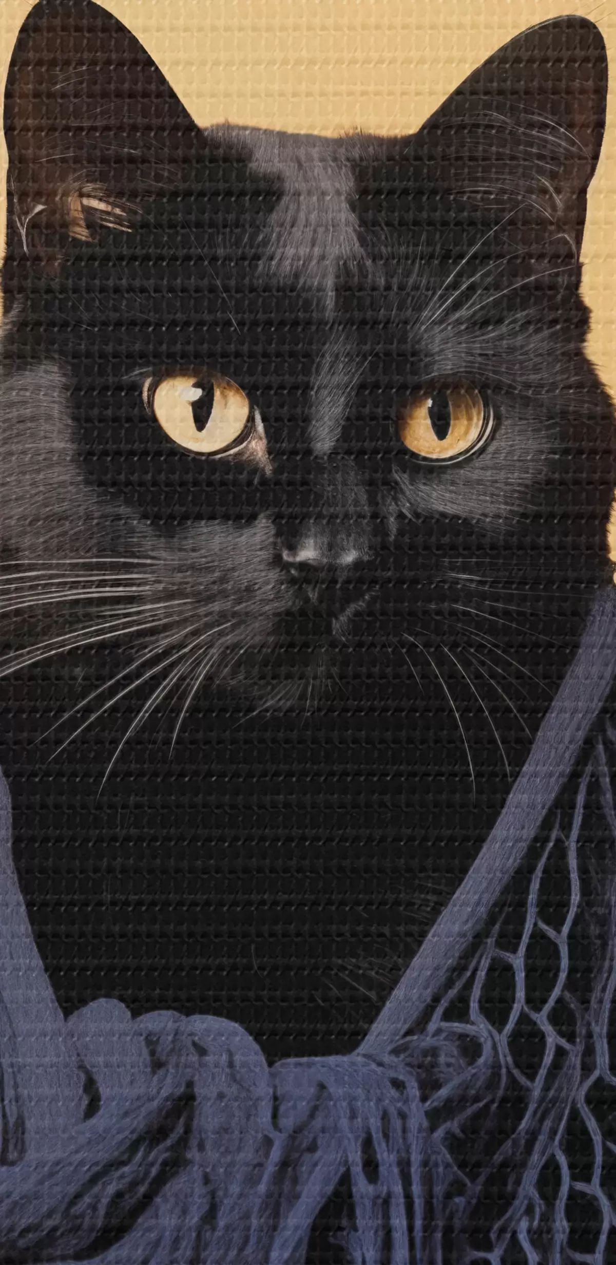 Кругла картина Чорний кіт у сітці r43959