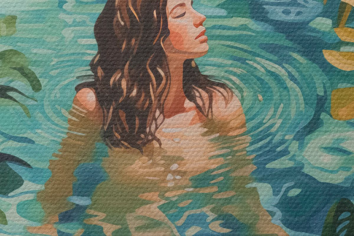 Кругла картина Дівчинка в басейні імітація картини r43961