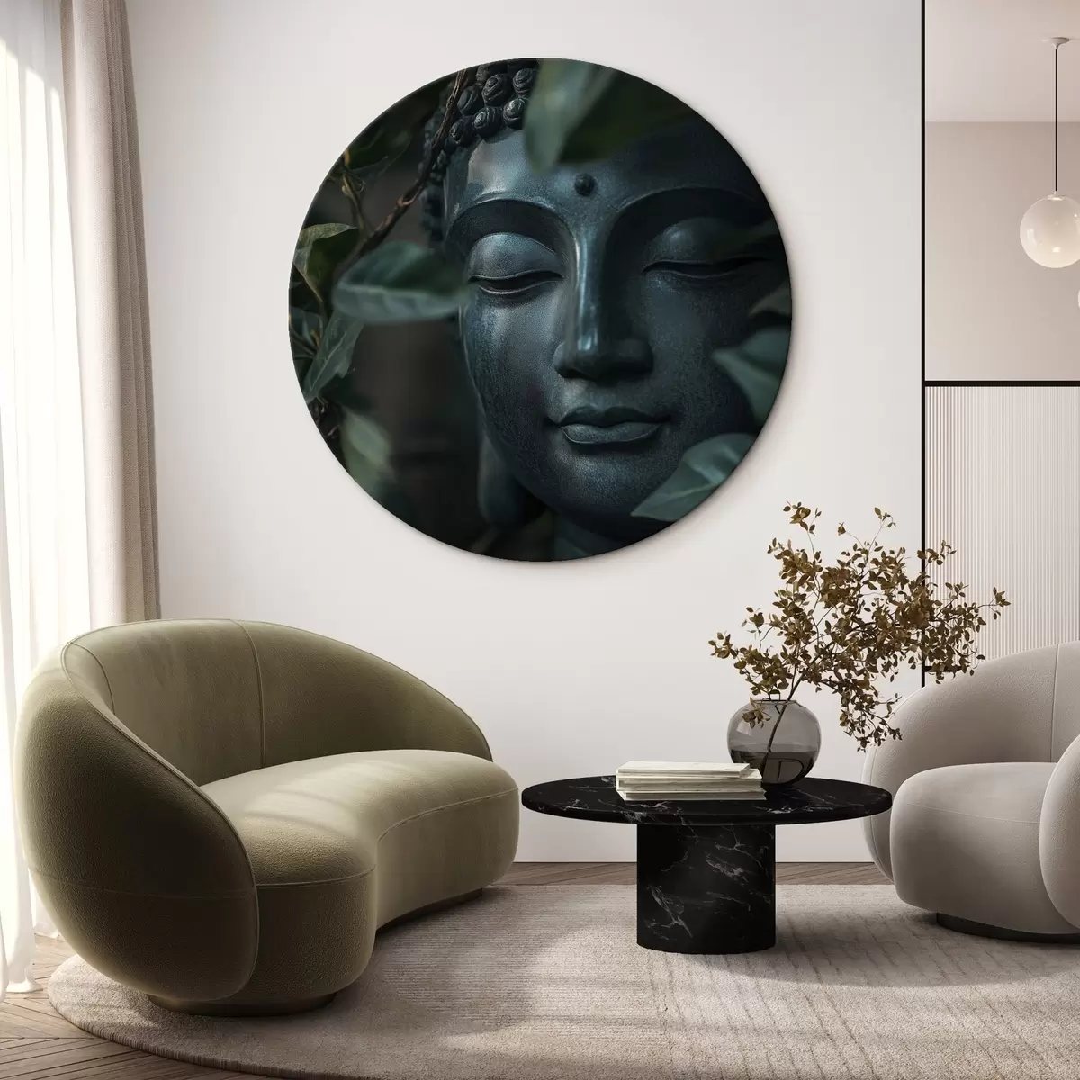 Кругла картина Зелений Будда в тропічному листі, реалізм Nr r44005