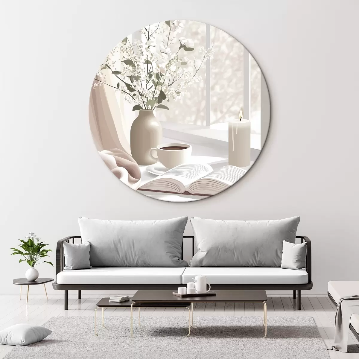 Кругла картина Весняний ранок з кавою та квітами, м'які пастельні кольори Nr r44015