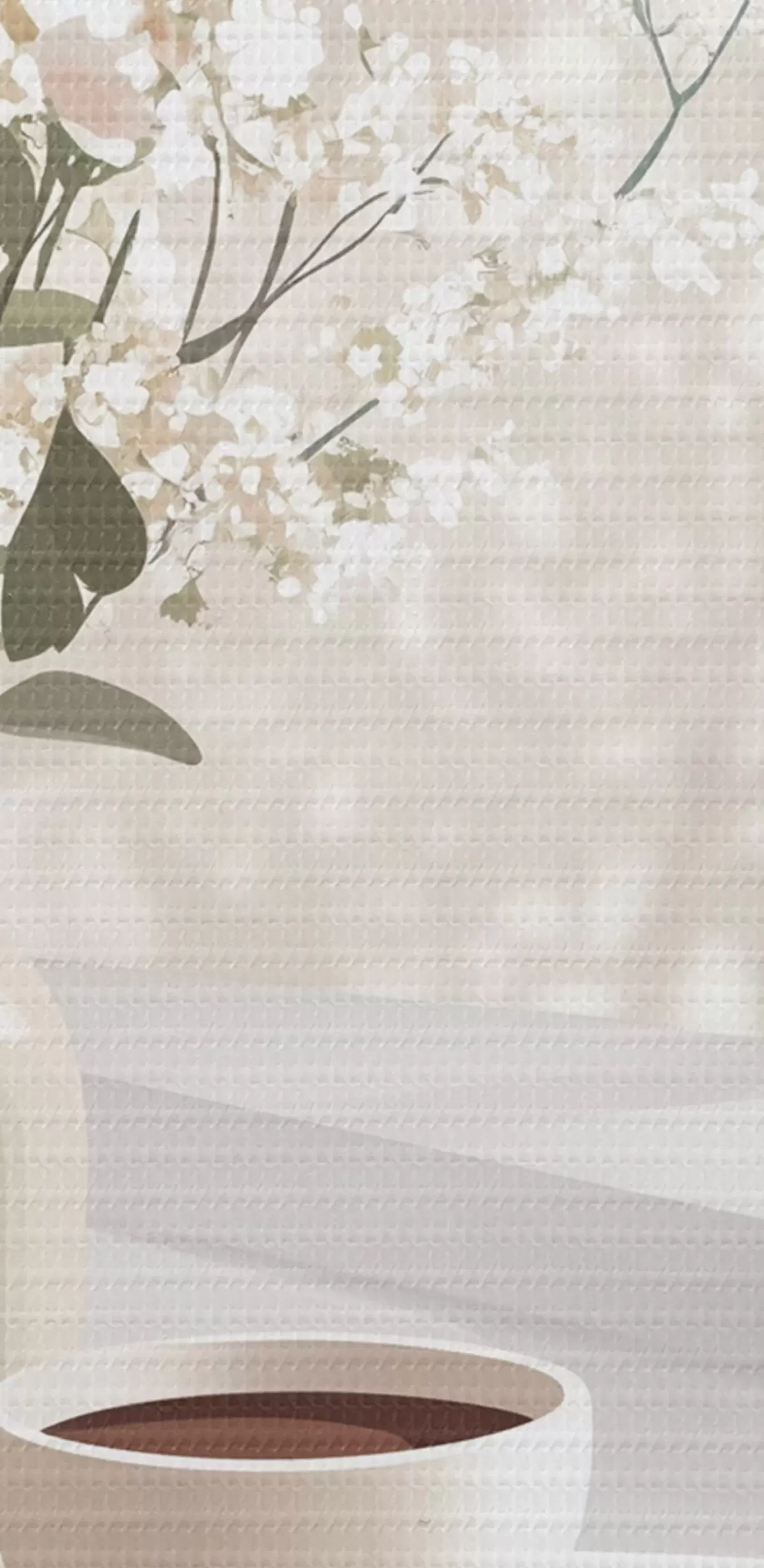 Кругла картина Весняний ранок з кавою та квітами, м'які пастельні кольори r44015