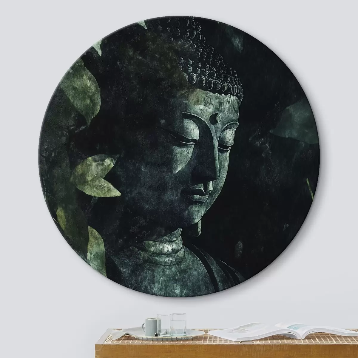 Кругла картина Медитативний Будда в зеленому листі, духовний Nr r44029