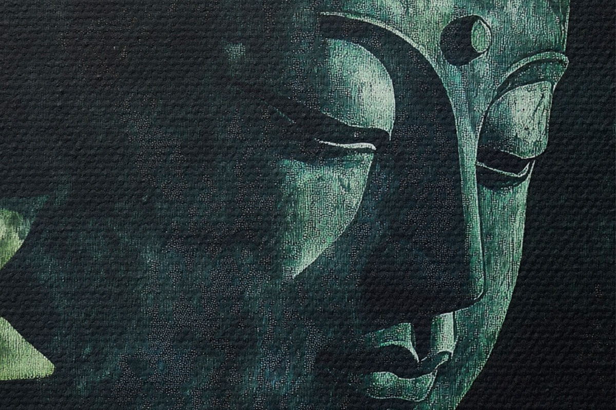 Кругла картина Медитативний Будда в зеленому листі, духовний Nr r44029