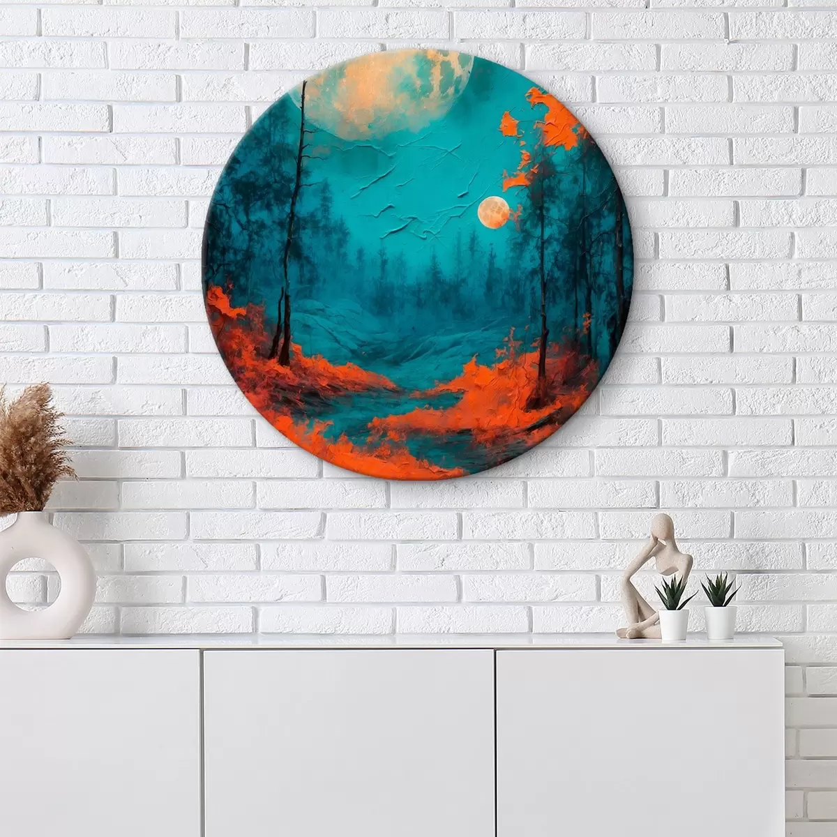 Кругла картина Чорний ліс при чорному місяці в стилі олійного живопису Nr r44063