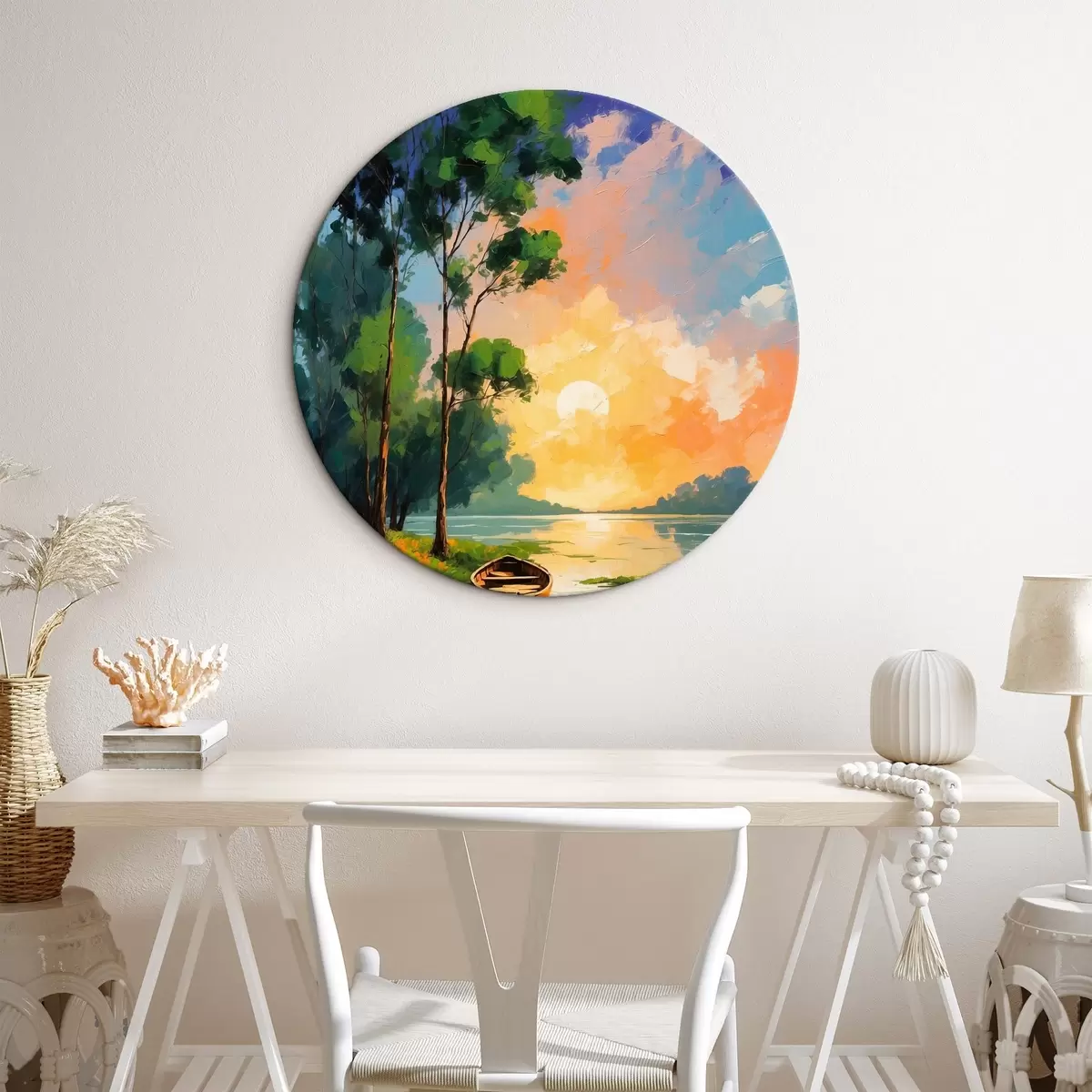 Кругла картина Човен біля острова в стилі акрилового живопису Nr r44065