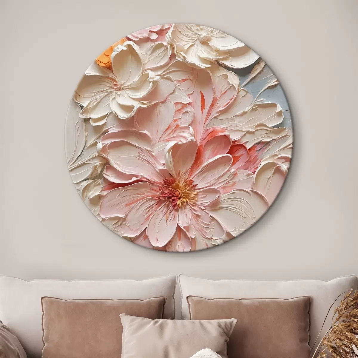 Кругла картина Білі та рожеві квіти на блакитному тлі в стилі олійного живопису Nr r44074