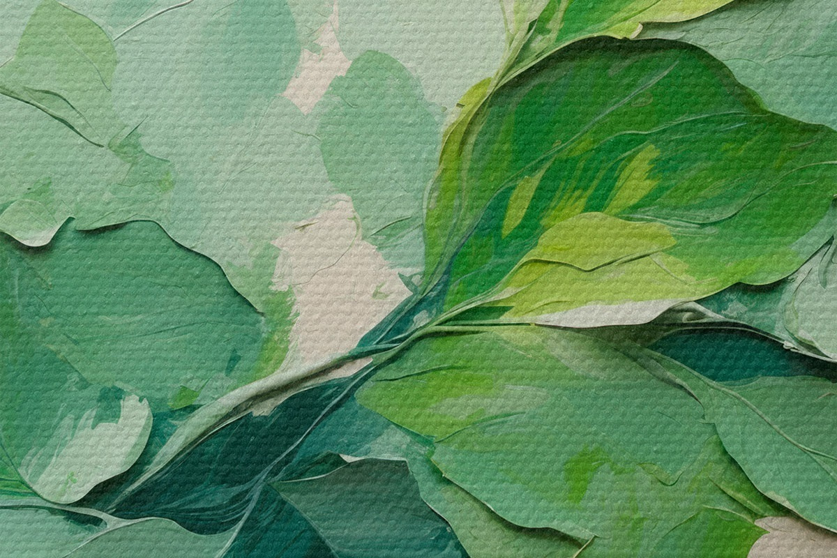 Кругла картина Гілка з зеленим листям в стилі олійного живопису Nr r44075