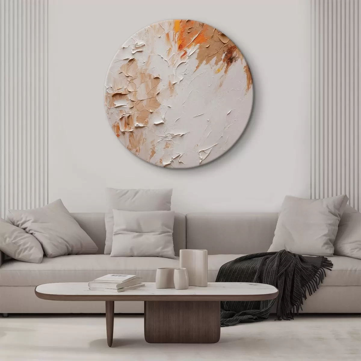 Кругла картина Абстрактний олійний живопис білими та коричневими кольорами Nr r44076