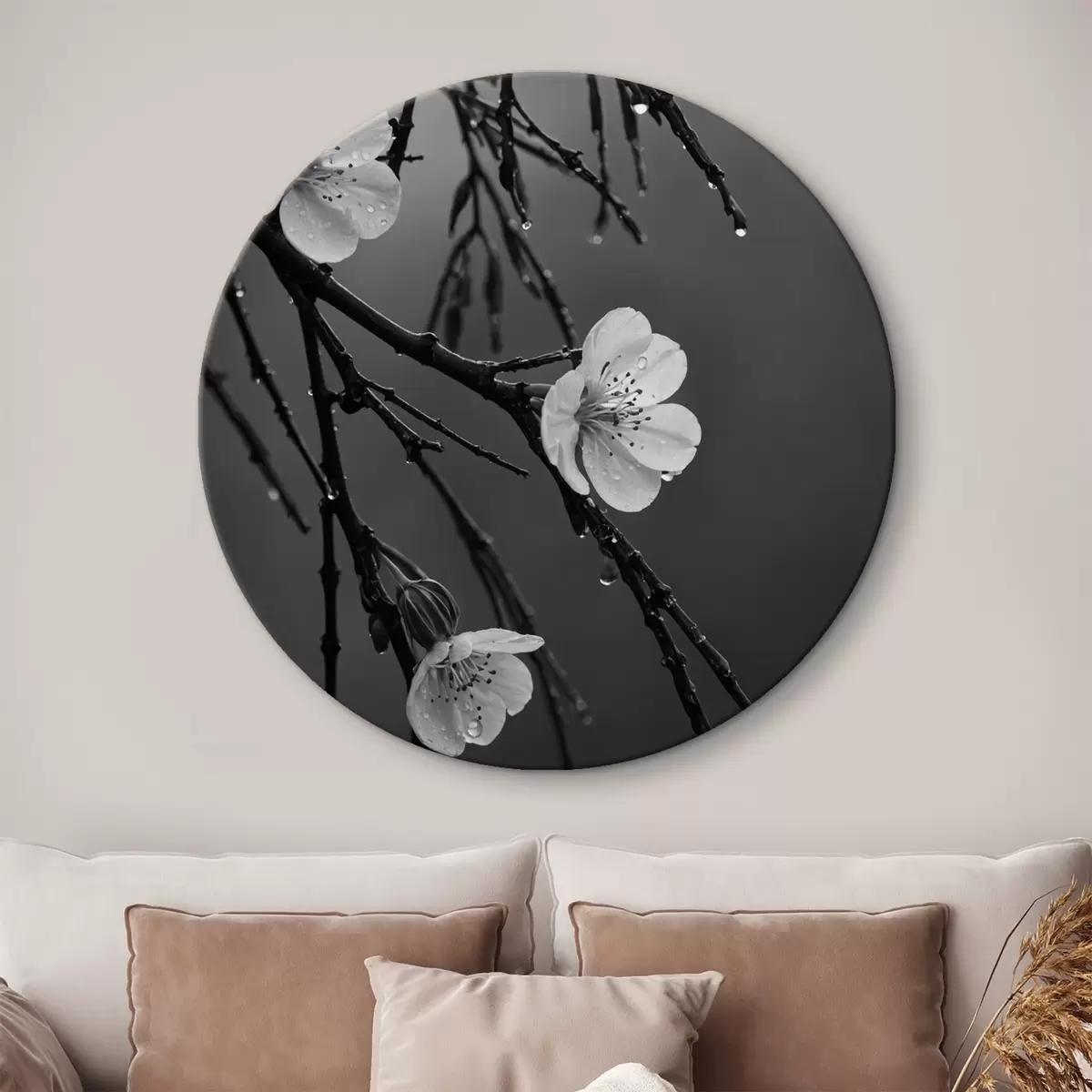 Кругла картина Квіти на гілках після дощу Nr r44098
