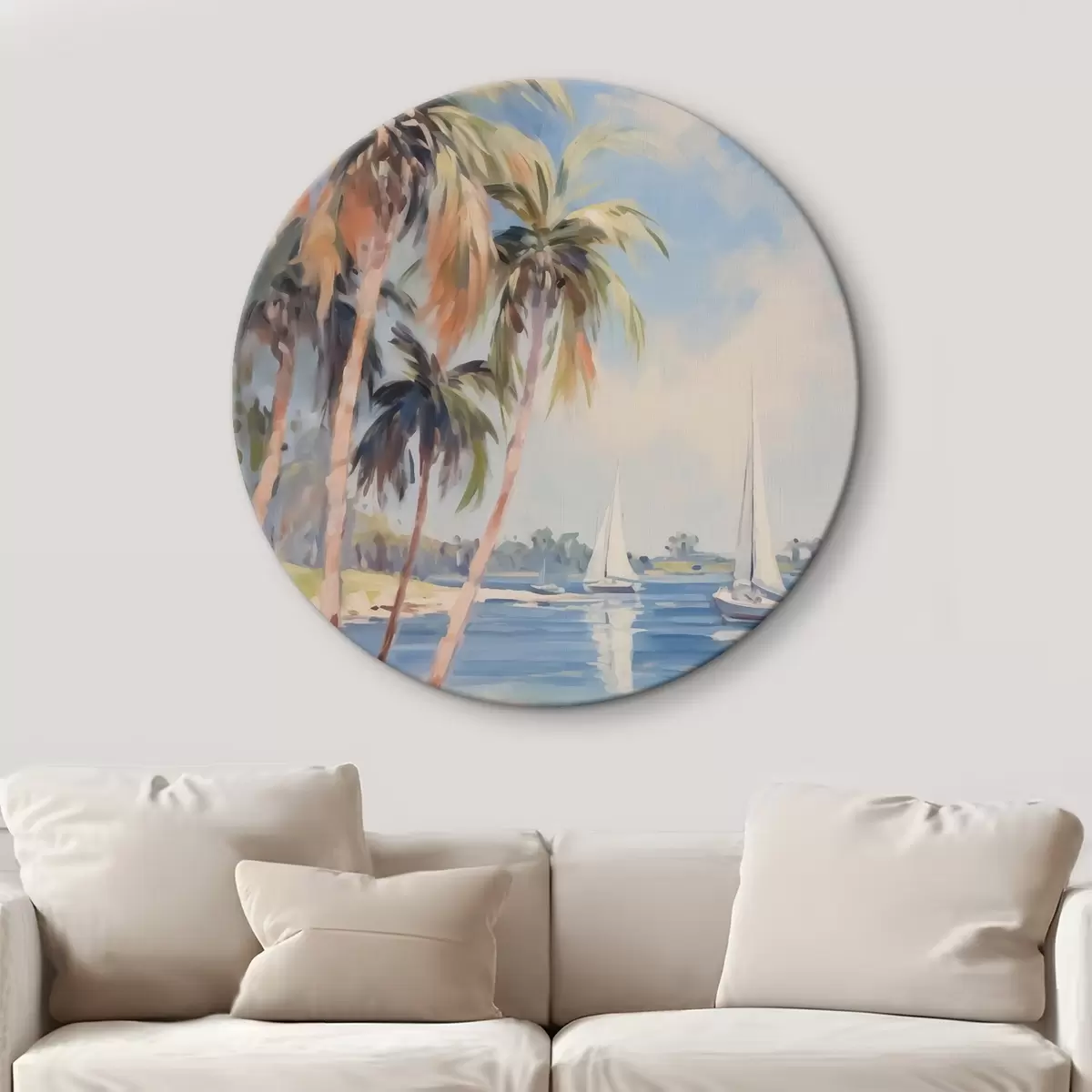 Кругла картина Пальми біля затоки імітація живопису Nr r44122